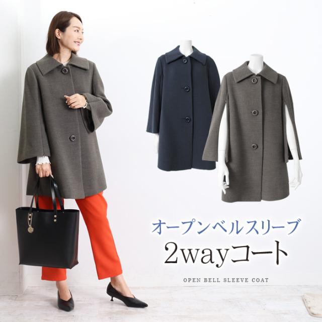 送料無料 コート レディース アウター ショート丈 ジャケット 長袖 ベルスリーブ ショートコート ゆったり Aライン ポンチョ ガウンコート 防寒 aw 41256