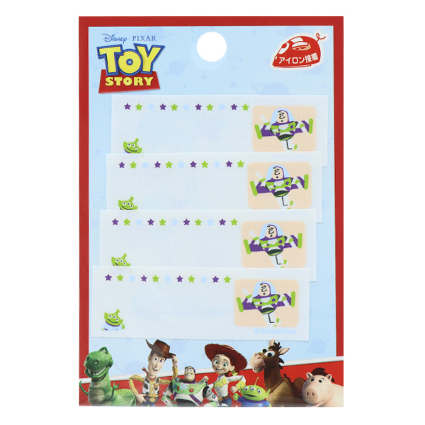 アイロンで簡単に接着できる、トイ・ストーリーのバズ・ライトイヤーのネームラベルです。