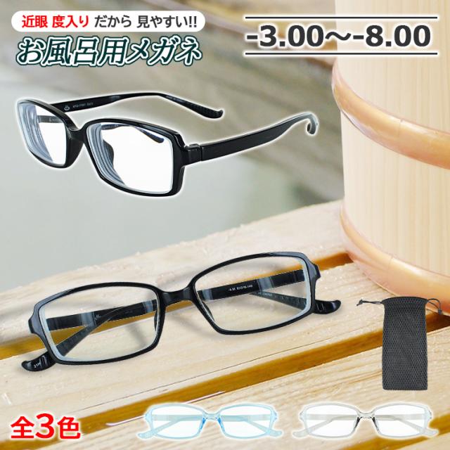 お風呂めがね お風呂用眼鏡 インスタントメガネ 曇り止め 曇りにくい メンズ レディース メタルフリー サビない 近眼度数入り 強度数 -3.0 -4.0 -5.0 -6.0 -7.0 -8.0 ブラック クリアブルー クリアブラック 軽量 熱に強い 温泉 銭湯 旅行