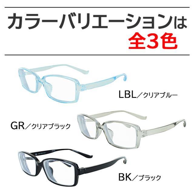 | ●フレームカラー クリアブルー クリアブラック ブラック ●レンズカラー(全色共通) クリア | ●素材 フレーム:プラスチック レンズ:プラスチック 収納袋:ポリエステル ●仕様 防曇コーティング(曇り止め) |