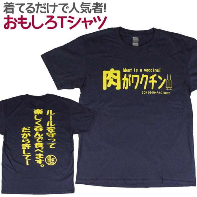 Tシャツ 肉がワクチン ネイビー 男女兼用 ユニセックス おもしろTシャツ