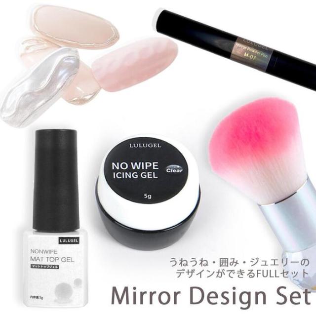 ※LULUGELノンワイプジェルは30秒で OK! 2.パウダーをすりすり擦り付けます。 3.余分なパウダーをダストブラシで払います。 4.ノンワイプジェルを塗布し完全硬化し完了です。 |