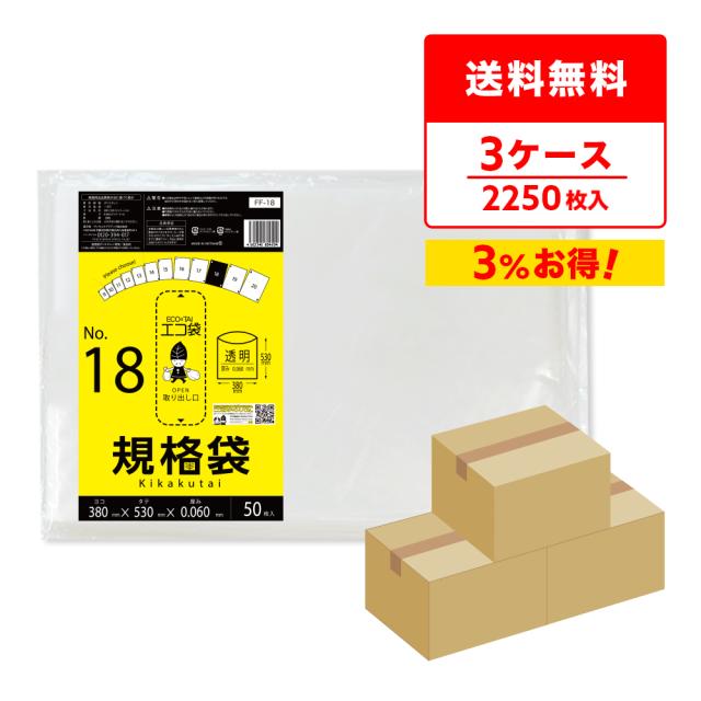 【まとめて3ケース】FF-18-3 規格袋 18号 0.060mm厚 透明 50枚x15冊x3箱 食品衛生法 RoHS指定 送料無料
