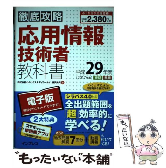 商品名:【中古】 応用情報技術者教科書 平成29年度春期秋期 (徹底攻略) / 瀬戸美月 / インプレス [単行本(ソフトカバー)]【メール便送料無料】