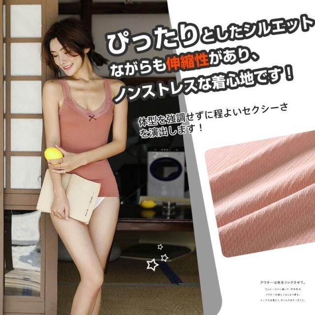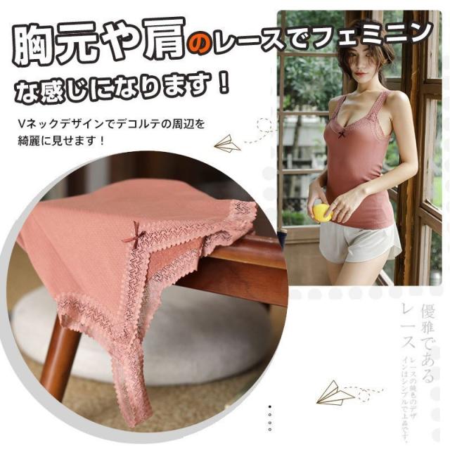 レースキャミソール Vネック トップス キャミソール タンクトップ レディース キャミ Vネック 胸元レース 重ね着 トップス インナー タンクトップ 大人 キャミソール インナー 春 夏 レース タンクトップ レディース vネック ノースリーブ トップス 重ね着 フィット 部屋着 肌着 下着 無地 シンプル おしゃれ かわいい セクシー 華奢に仕上げた肩紐もレディライクな印象に。