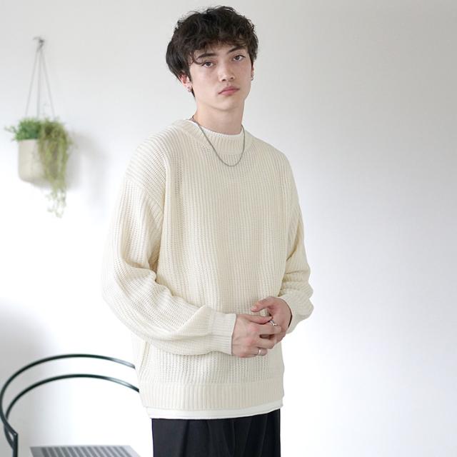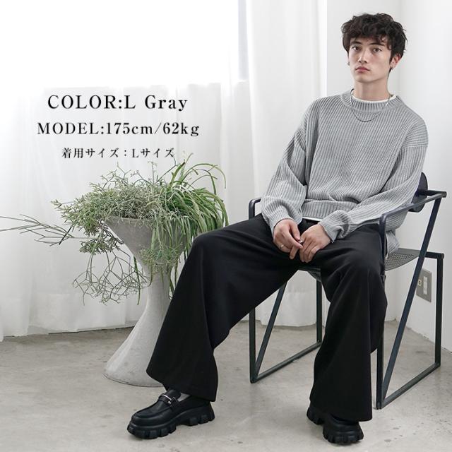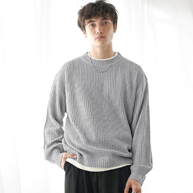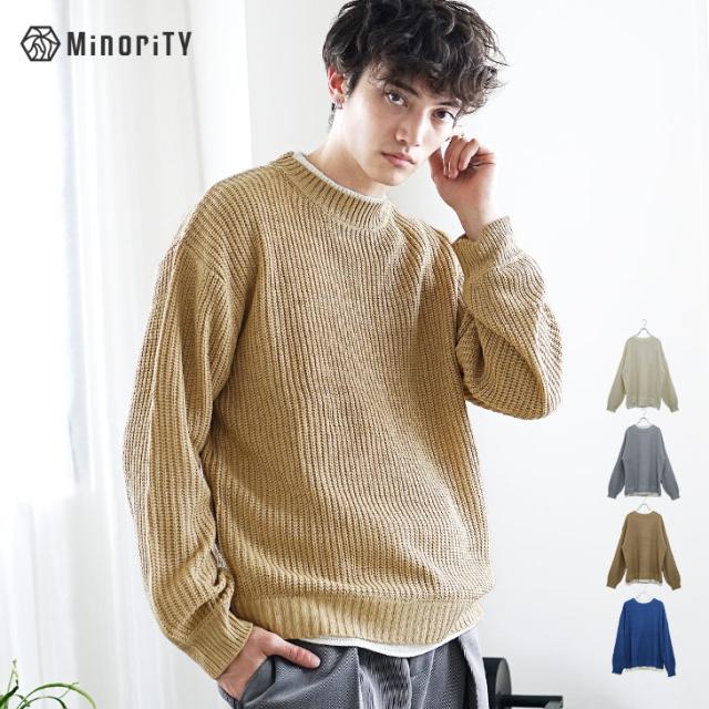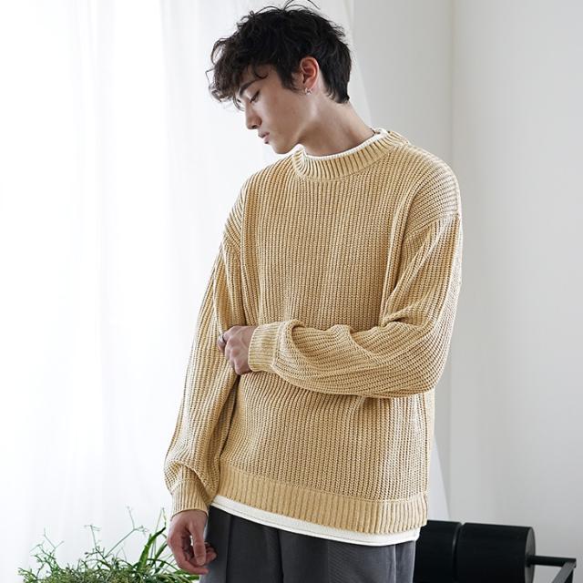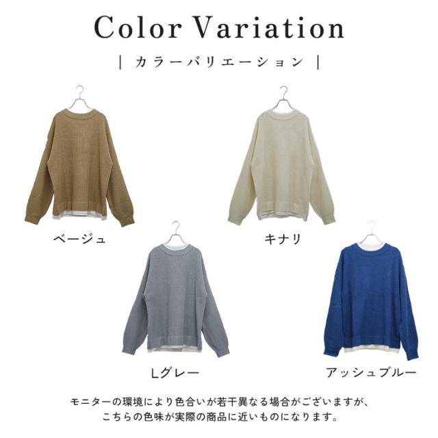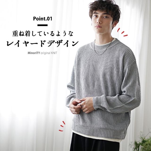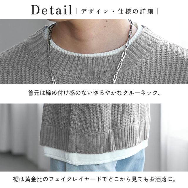 【レイヤードクルービッグニット】1枚着るだけでレイヤードコーデが完成する重ね着風ニット。