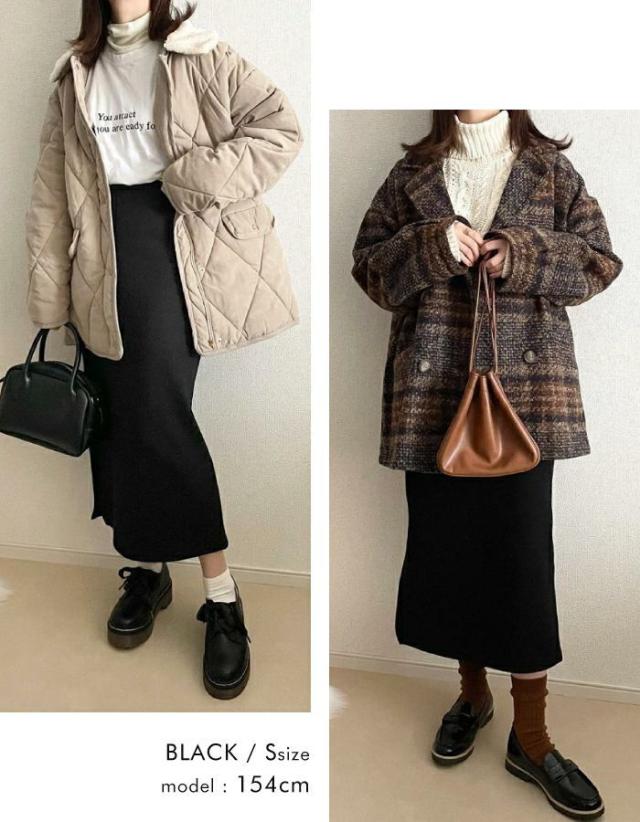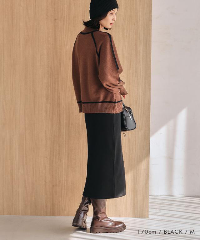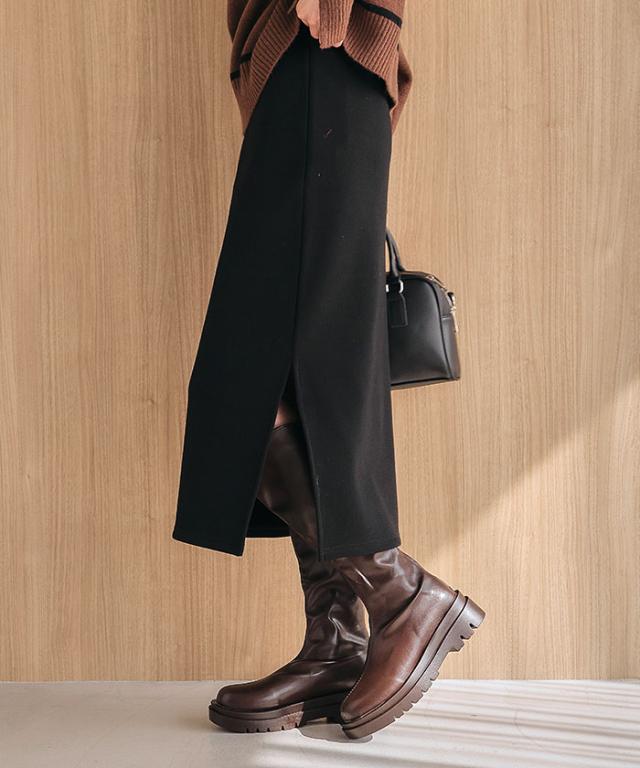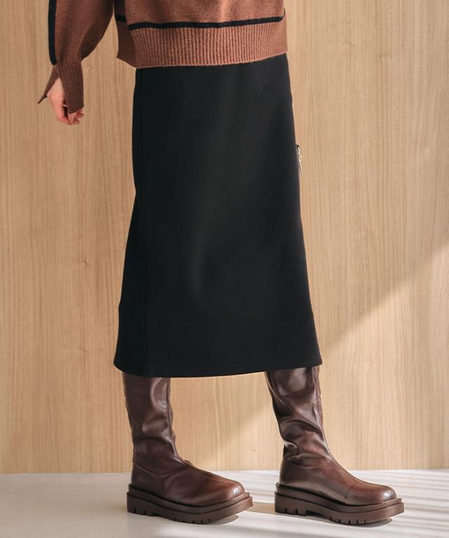 裏起毛で肌寒い季節もあたたか。 リブタイトロングスカート