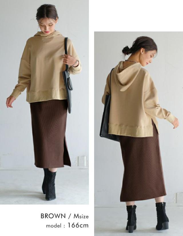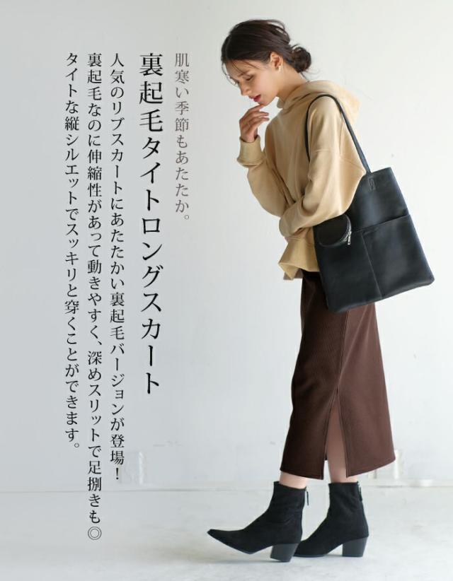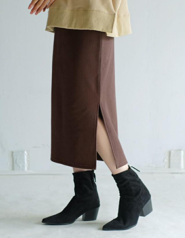 人気のリブスカートにあたたかい裏起毛バージョンが登場! 裏起毛なのに伸縮性があって動きやすく、深めスリットで足捌きも◎タイトながら縦に入ったリブでスッキリと穿くことができます。