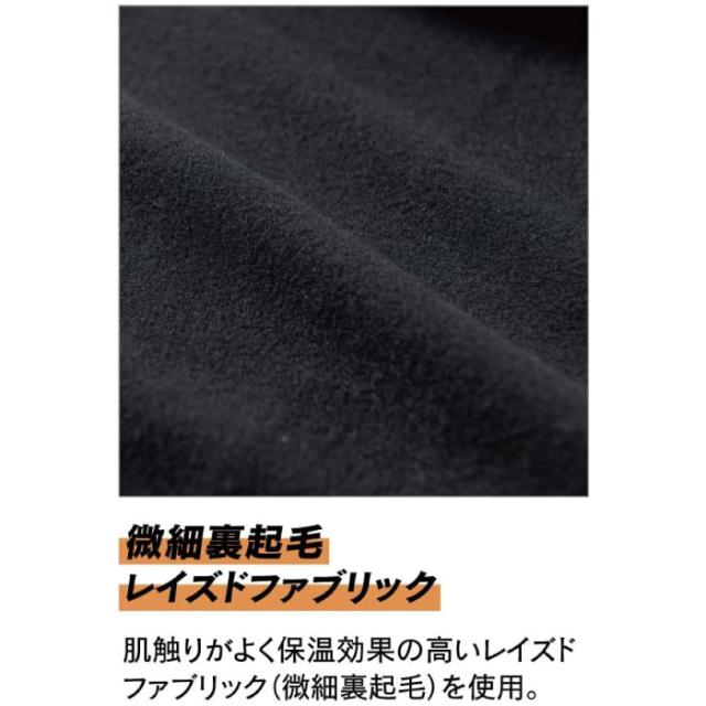 微細裏起毛レイズドファブリック肌触りがよく保温効果の高いレイズドファブリック(微細裏起毛)を使用。