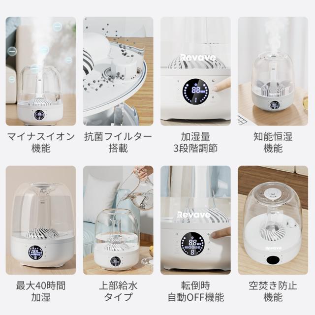 「100円OFFクーポン」 【10倍ポイント】 超音波式加湿器 抗菌カートリッジ 最大40時間連続運転 マイナスイオン アロマ対応 静音 省エネ 空焚き防止 転倒自動OFF 大容量 超音波 上部給水 卓上加湿器