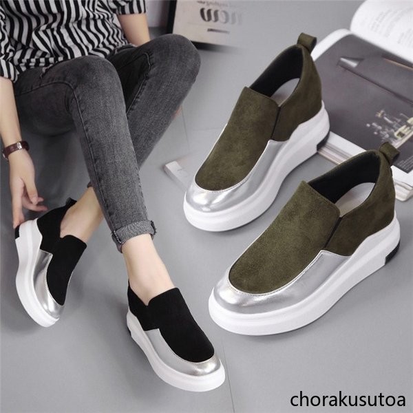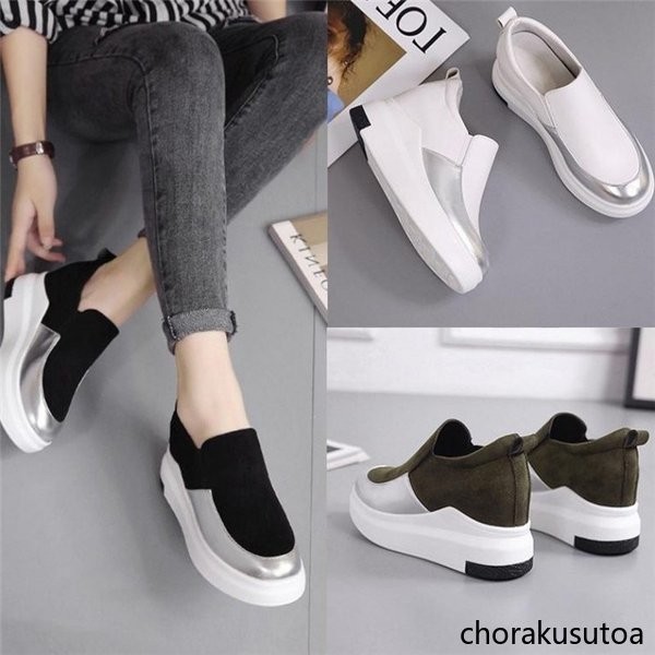 スニーカー レディース 靴 シューズ 厚底 インヒール スリッポン ぺたんこ 靴 くつ ローカット レディースシューズ フラットシューズ 秋