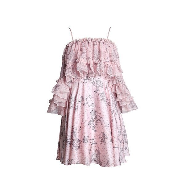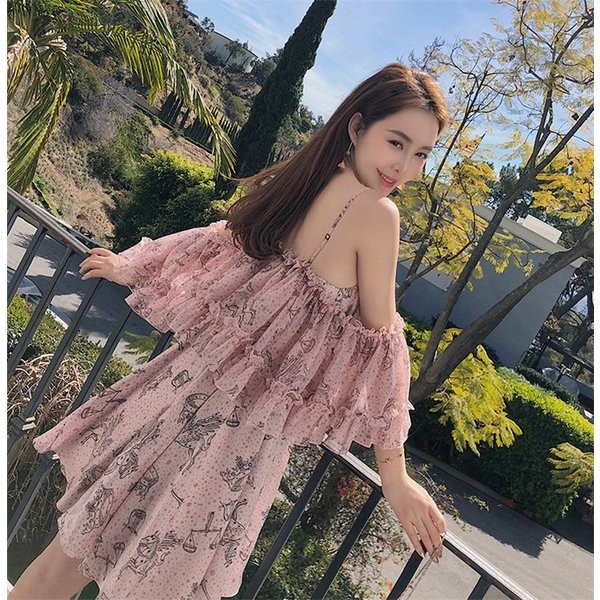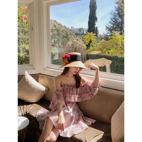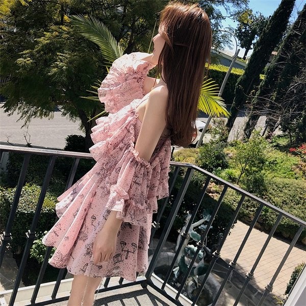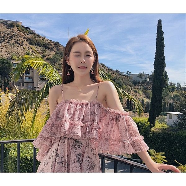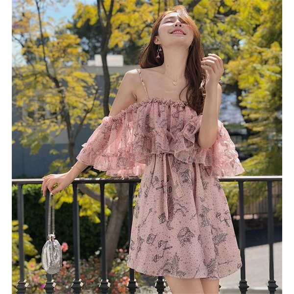 ワンピース レディース 春 夏 シフォン 花柄 オフショルダー フリル ミディアムワンピース