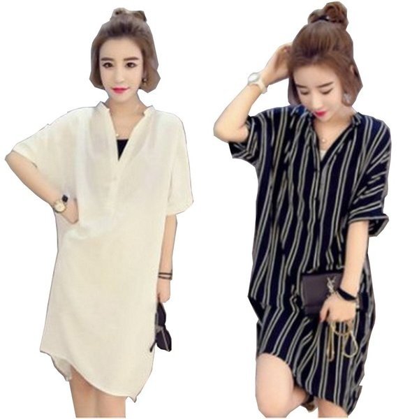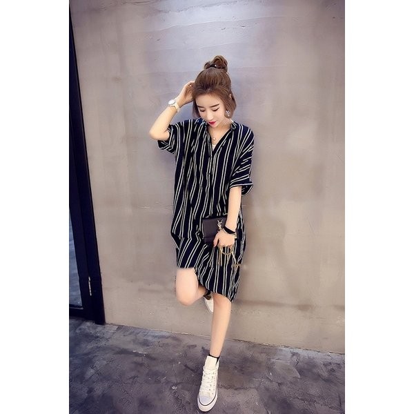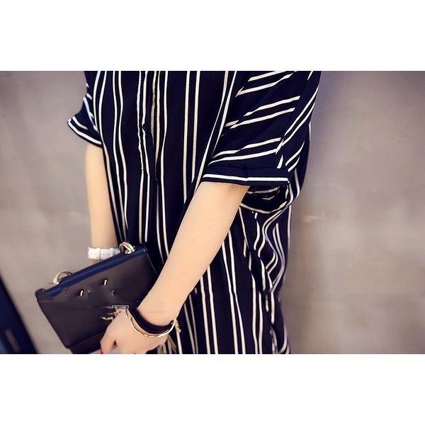 ワンピース ロング丈 夏 半袖 レディース ストライプ ロングワンピース シャツ 結婚式 披露宴 二次会 卒業式 発表会