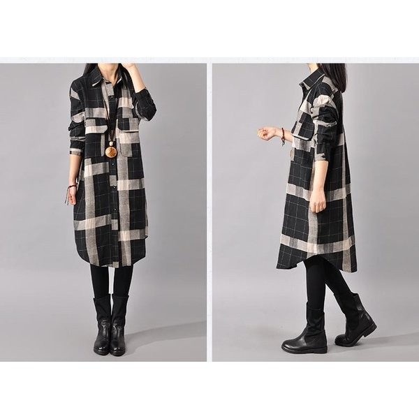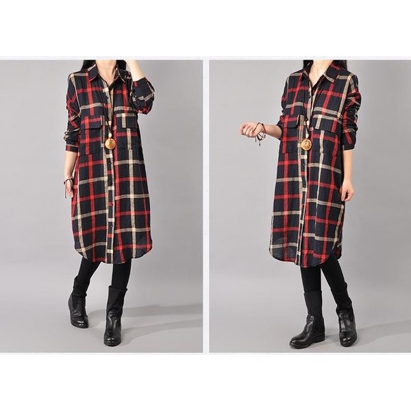 ワンピース チェック柄ワンピース シャツワンピース ひざ丈ワンピース ゆったり