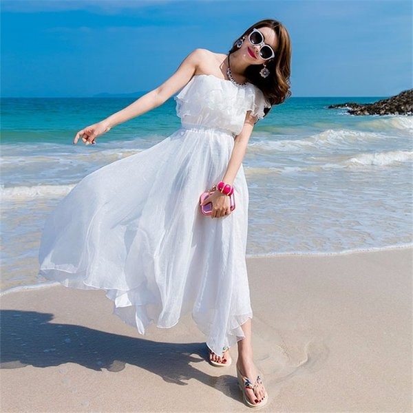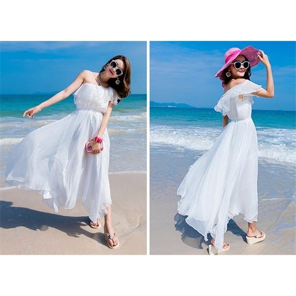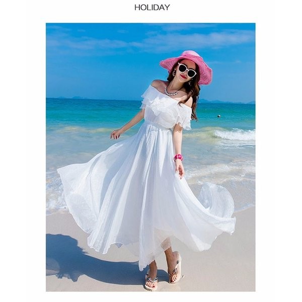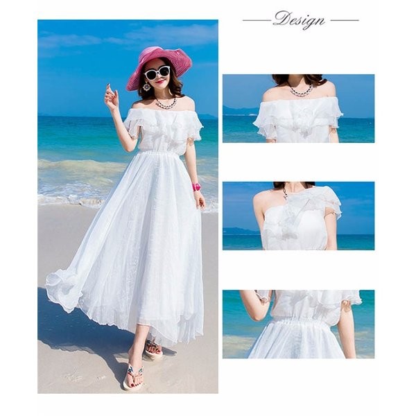 リゾートワンピ ハワイ リゾートワンピース ロング丈 マキシワンピース レディース ボヘミア風 無地 オフショル ビーチ オフショルダー
