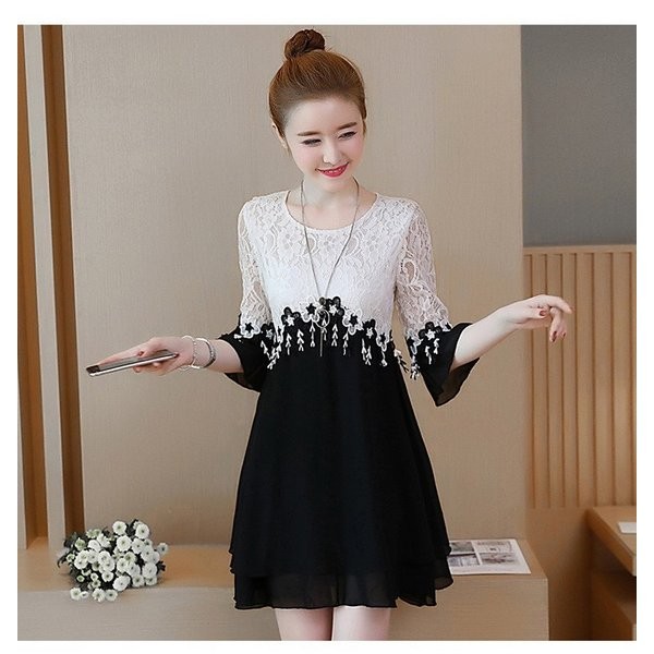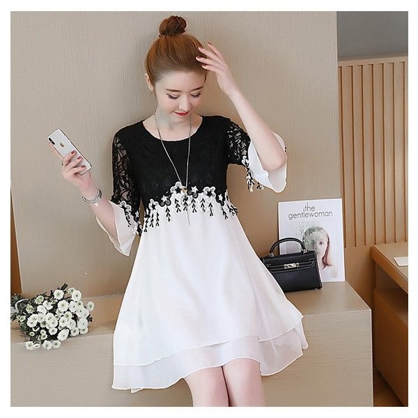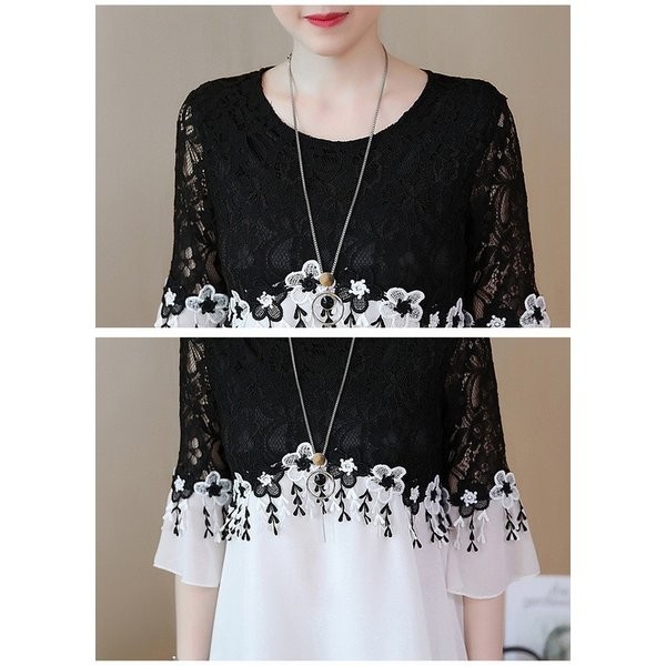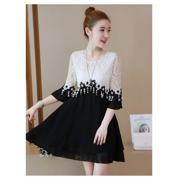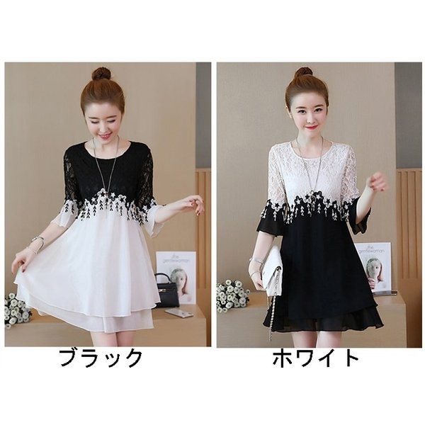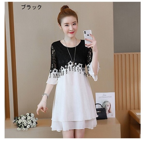 ワンピース レディース 夏 半袖 ミディアムワンピース 切り替え レースワンピース お呼ばれ 20代30代40代 夏 パーティー 謝恩会 お食事会