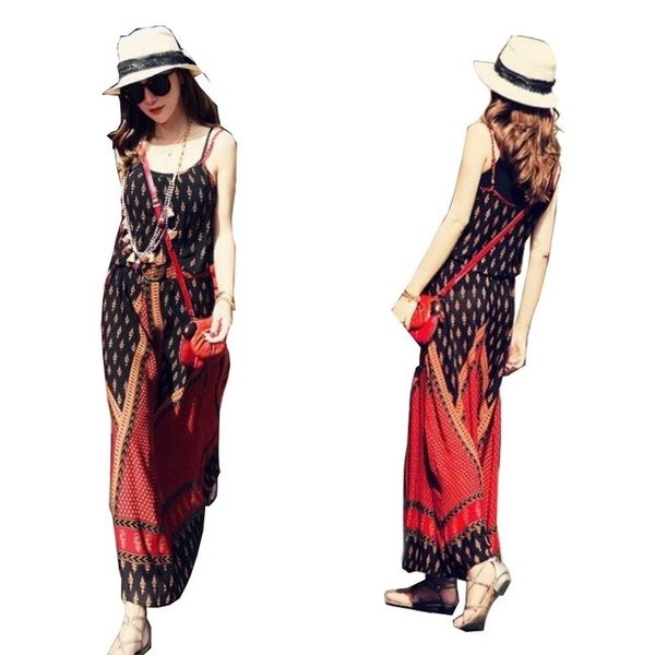 マキシワンピース レディース 夏 リゾート ノースリーブ ボヘミアン風 ビーチ ハワイアン ワンピース レディース ファッション
