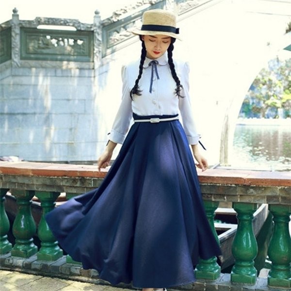 クラシックワンピース 切り替え ロングワンピ 長袖 マキシワンピース カレッジ風 森ガール エレガント 上品