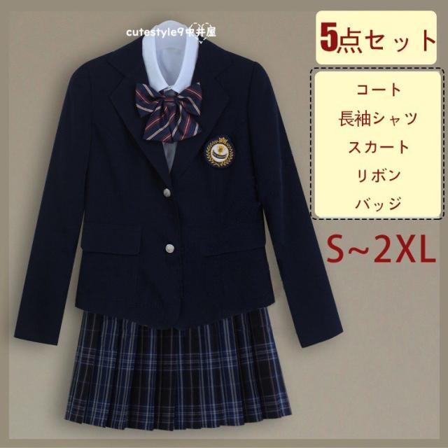 女の子スーツ 上下セット 卒業式 女子高校生 学生服 バッジ プリーツスカートスーツジャケット 制服 スカート ネクタイ 女子高校生 5点セット 入学式