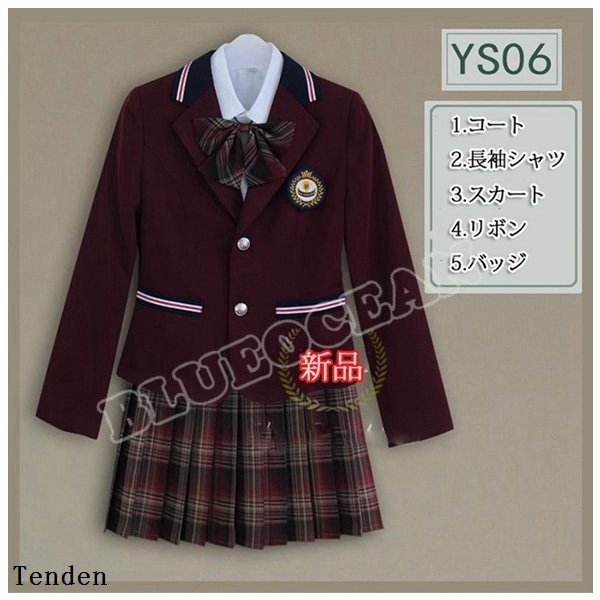 女の子スーツ 上下セット 卒業式 女子高校生 学生服 バッジ プリーツスカートスーツジャケット 制服 スカート ネクタイ 女子高校生 5点セット 入学式