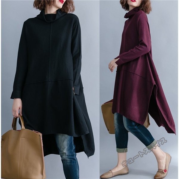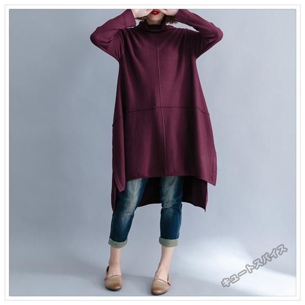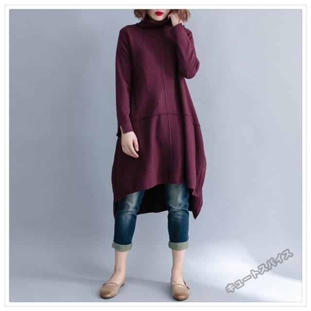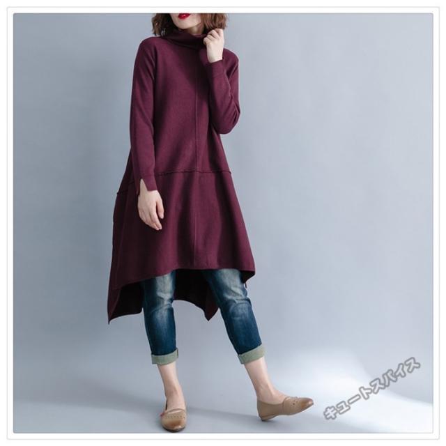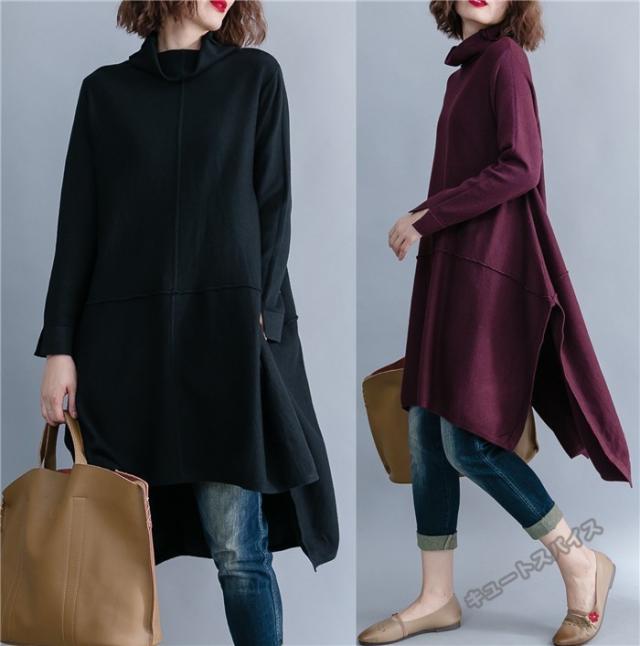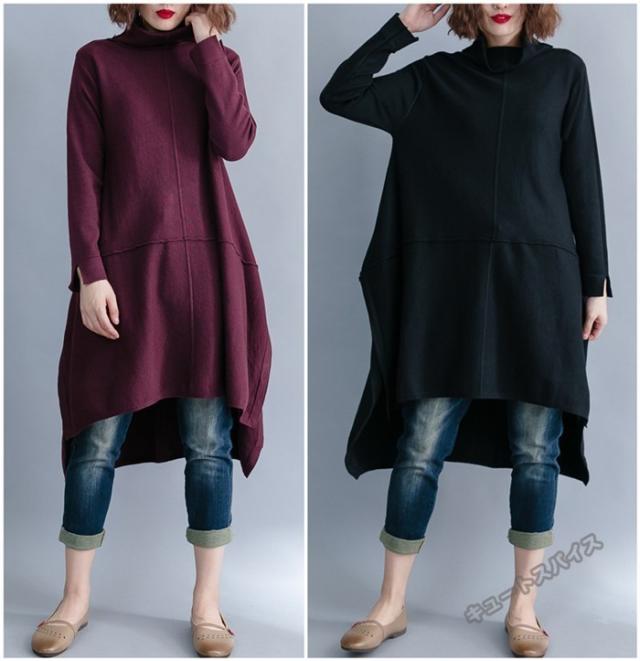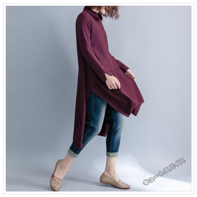 ワンピース レディース 40代 きれいめ おしゃれ 着痩せ ニット 膝丈 カットソー ゆったり 体型カバー ママ 無地 大きいサイズ 母親 チュニック 30代 50代