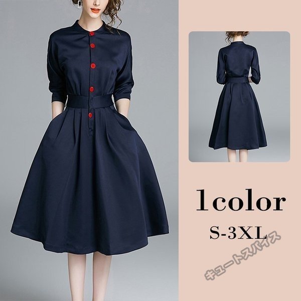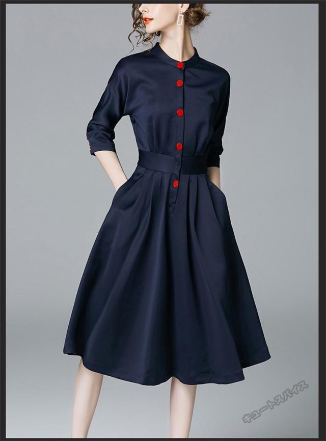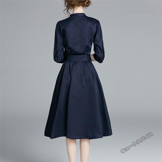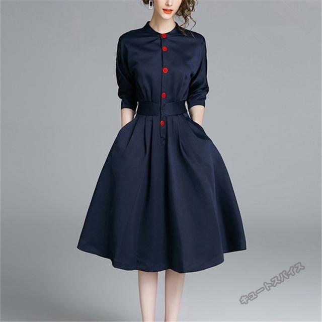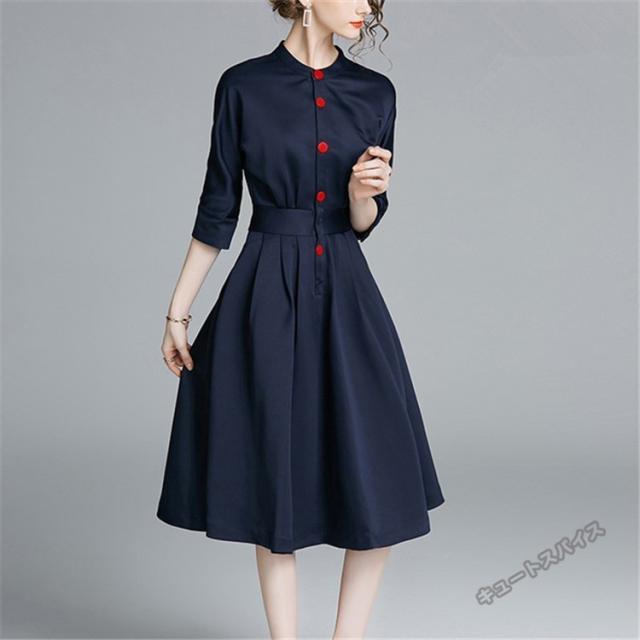 ワンピース レディース 春秋 膝丈ワンピース きれいめ 通勤 韓国スタイル 七分袖 Aライン 着痩せ ロング 無地 オシャレ お呼ばれ 結婚式 二次会