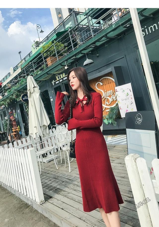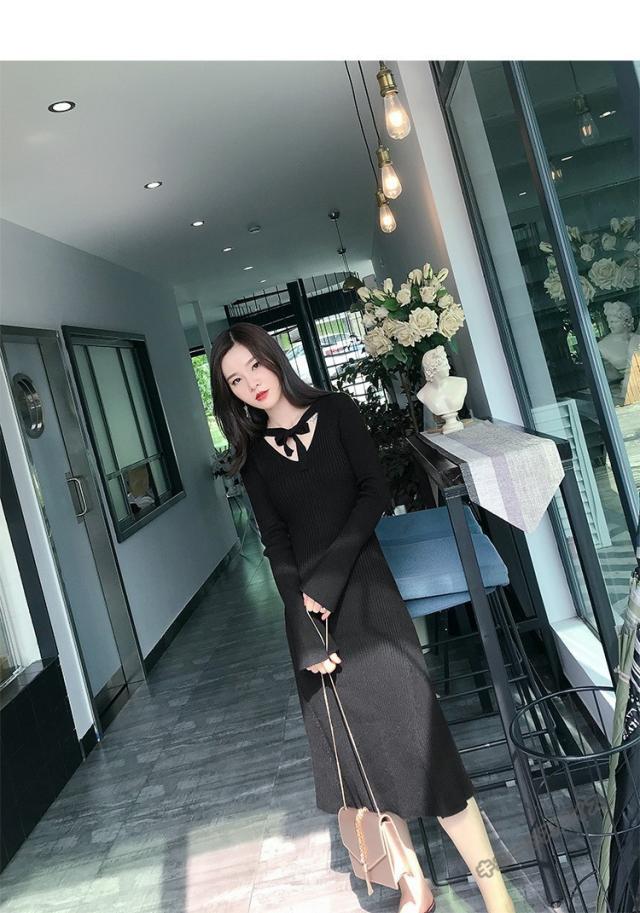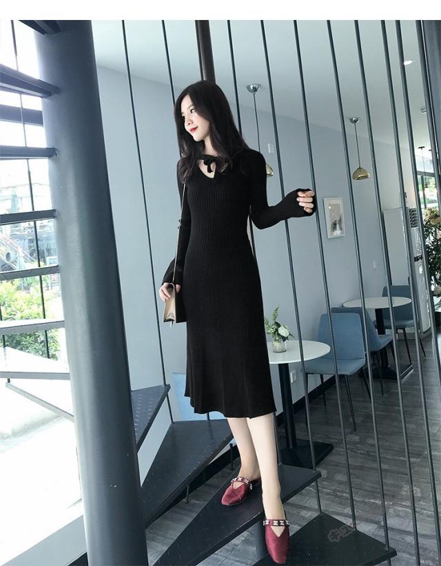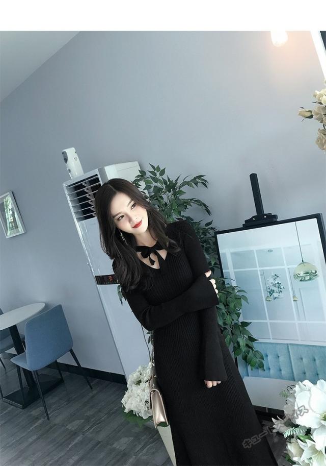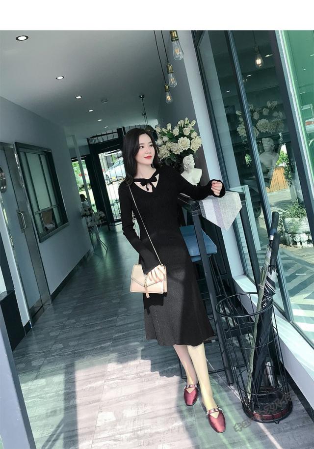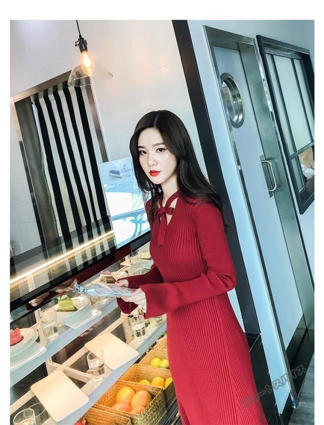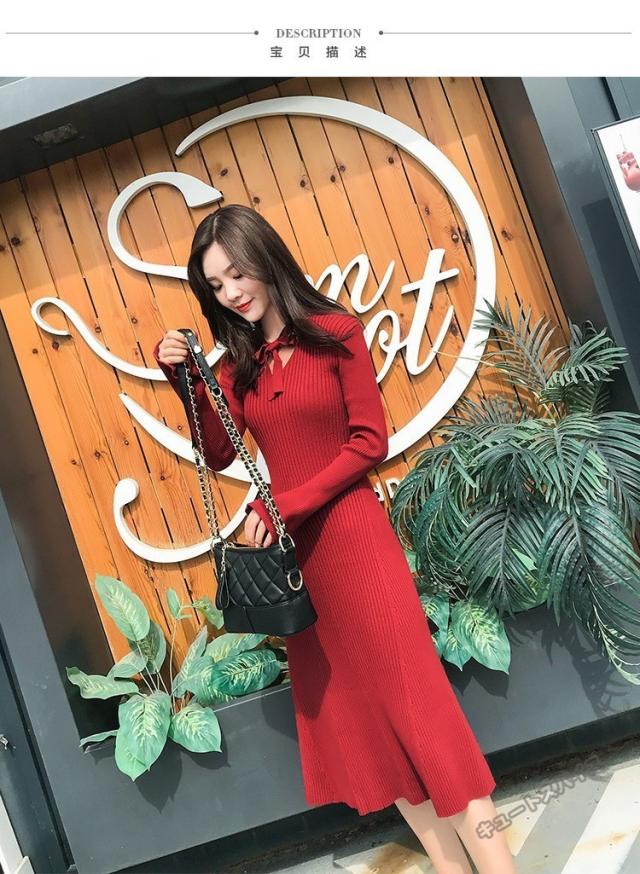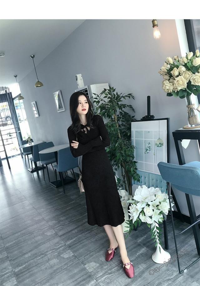 ニットワンピース マキシ ワンピース マキシ丈 ロング丈 ミディアム丈 長袖 秋ハイネック タイト スリット ワンピース 無地 レディース春秋