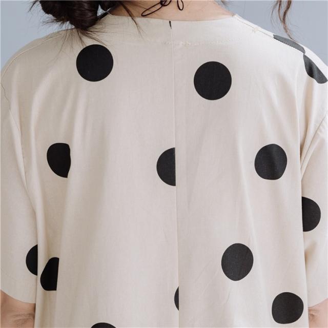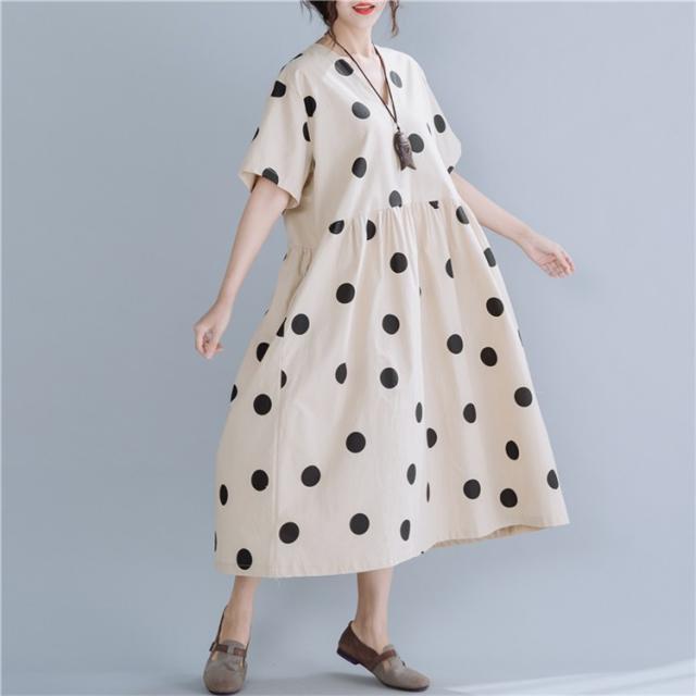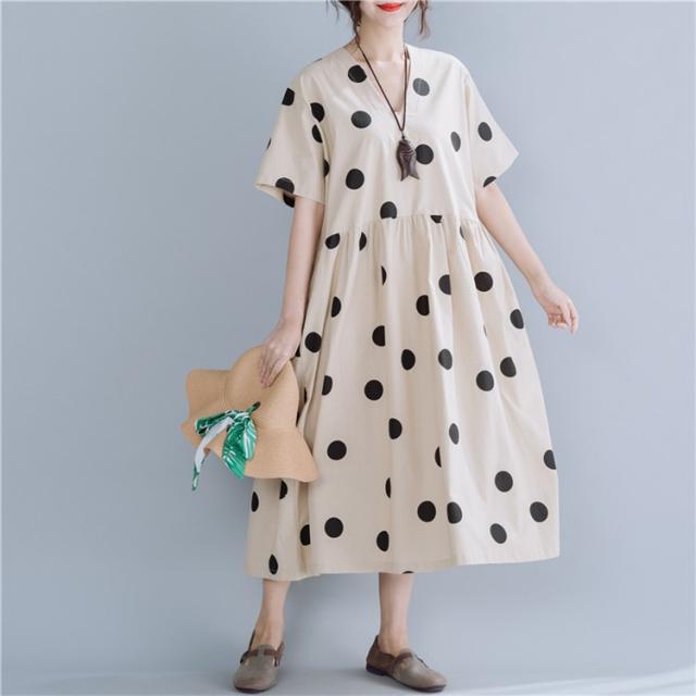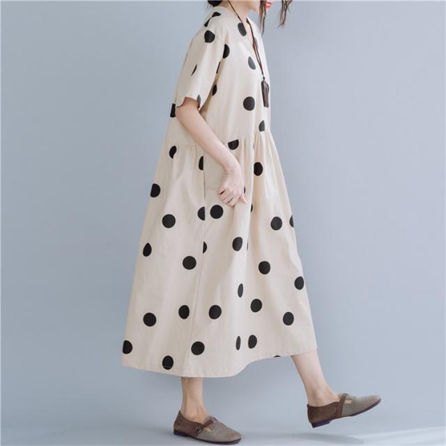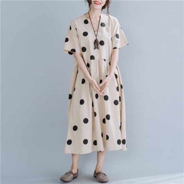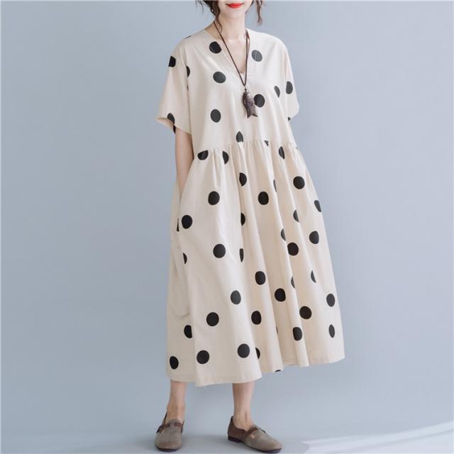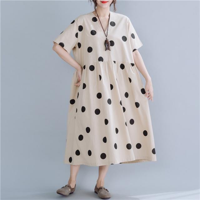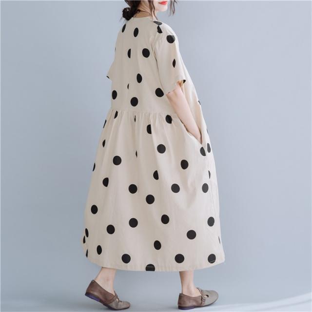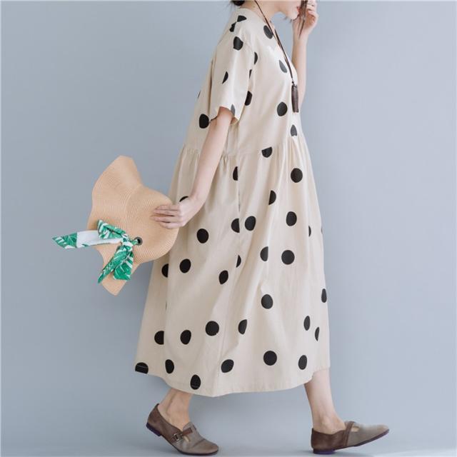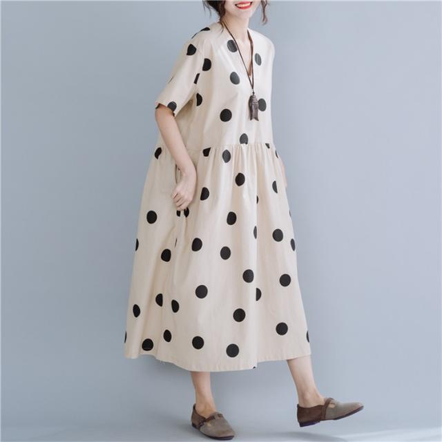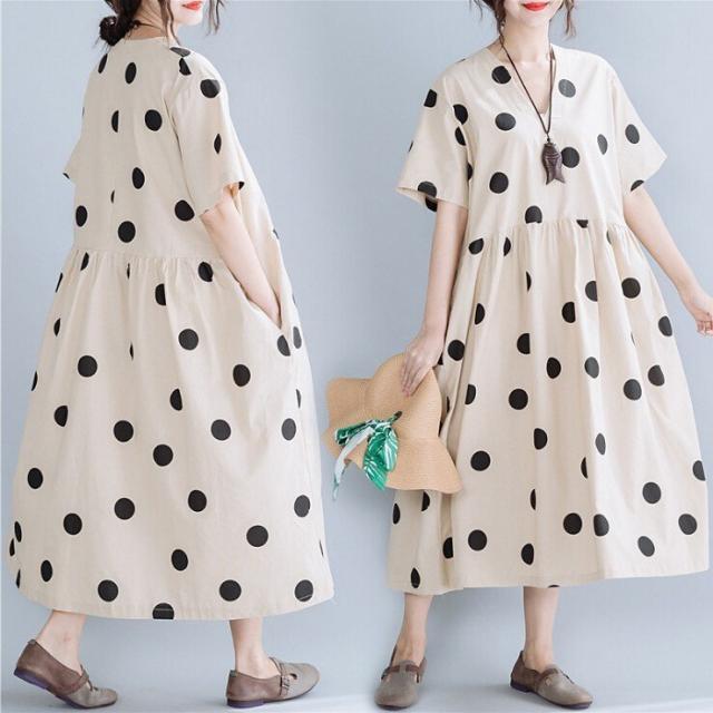 マキシワンピース ワンピース レディース オシャレ 夏 大きいドット 大きいサイズ ミモレ丈 Vネック 体型カバー 40代 半袖ワンピ