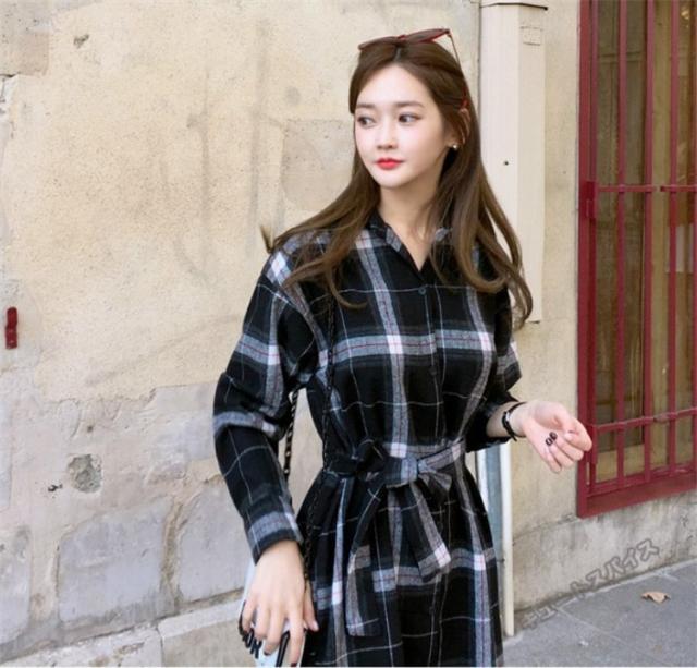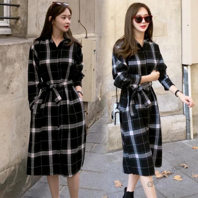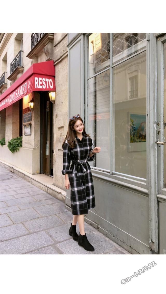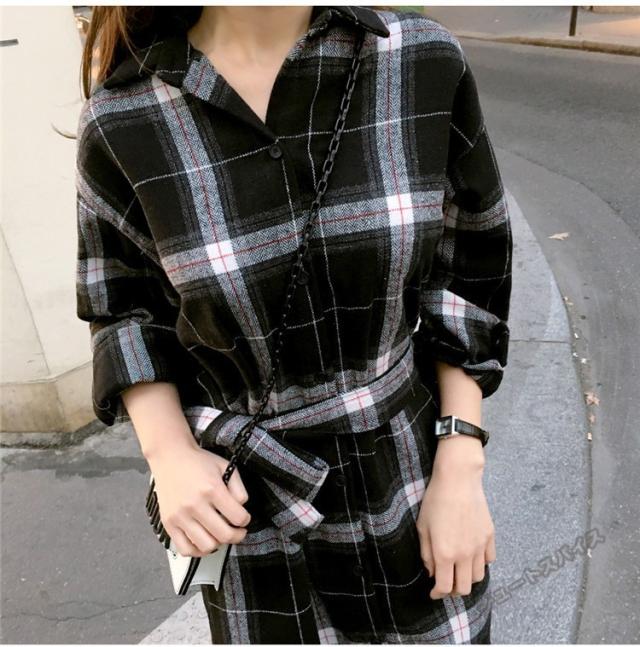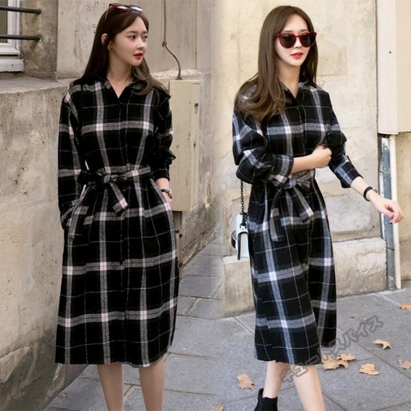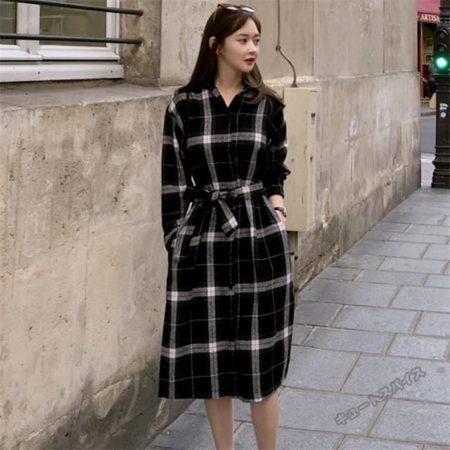 ワンピース レディース 40代 おしゃれ きれいめ 着痩せ チェック柄 ベルト付き春 夏 長袖ワンピース 大きいサイズ 韓国風 ゆったり 通勤 OL 上品 新作 30代
