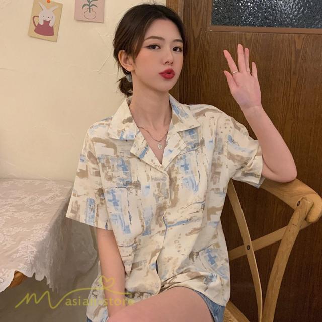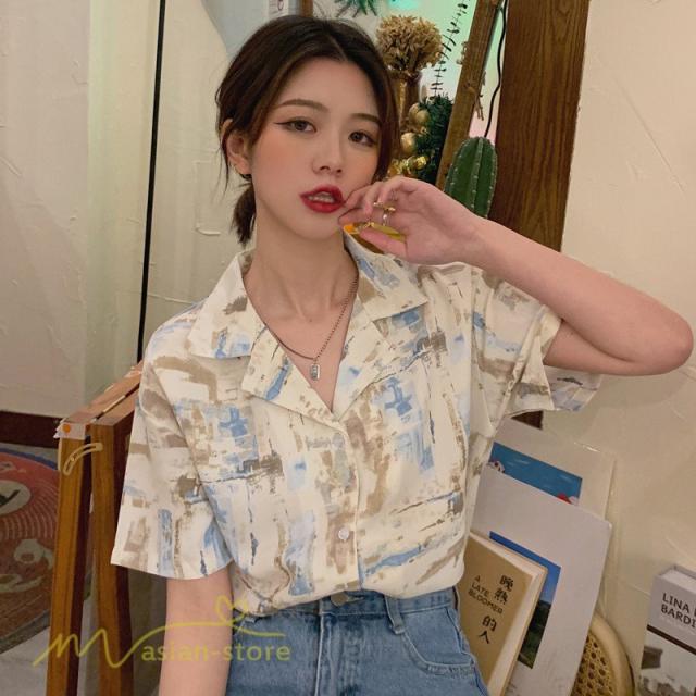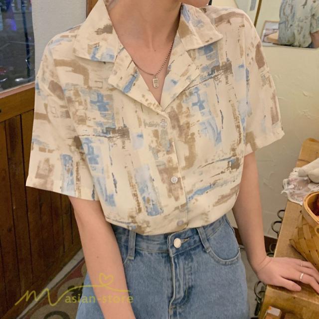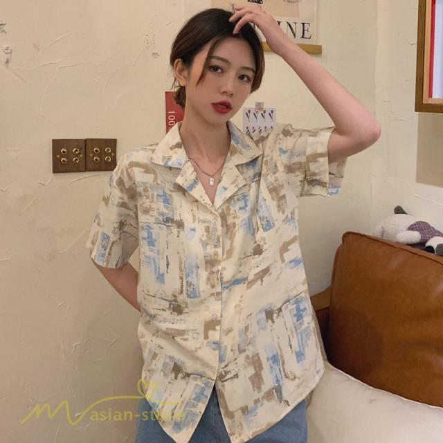 サマーシャツ レディース シャツ 半袖 カジュアル ワイドシャツ きれいめ 夏服 プリント 女性着 ゆるシャツ トップス 半袖シャツ 可愛い ライトアウター 着回し