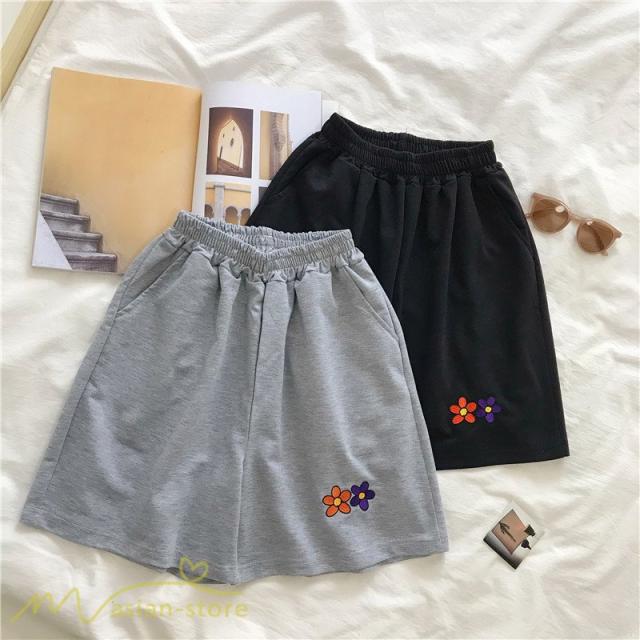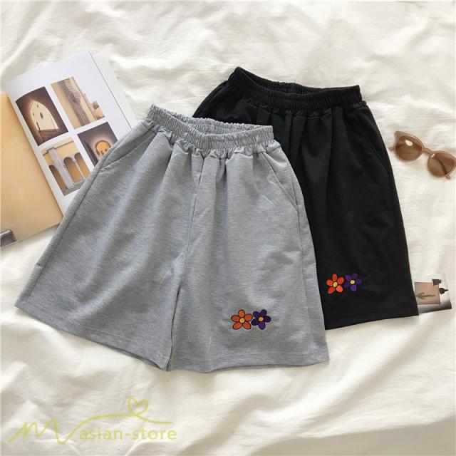パンツ レディース ショートパンツ 夏服 カジュアルパンツ 可愛い ハーフパンツ ポケット ハイウエスト ワイドパンツ 着回し シンプル ボトムス お出かけ 花柄