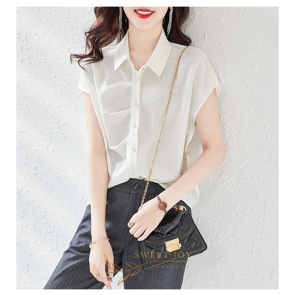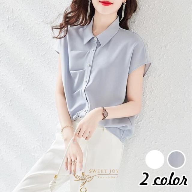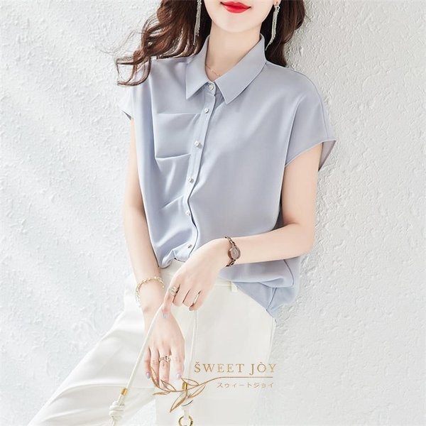 ブラウス レディース 40代 春夏新作 オシャレブラウス 不規則 無地 半袖トップス 上品 大人 通勤OL ゆったり シャツ30代 50代