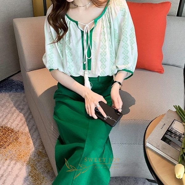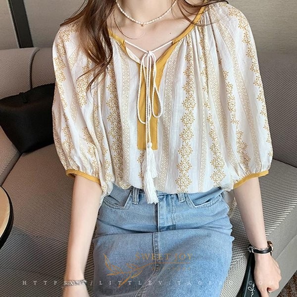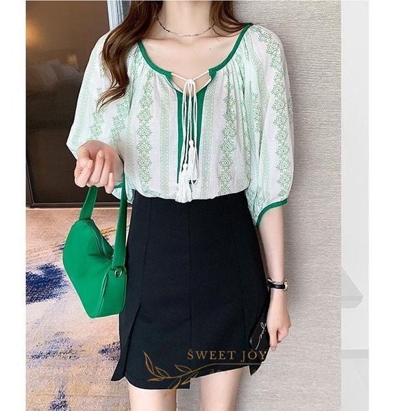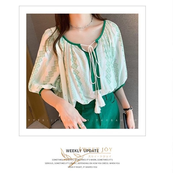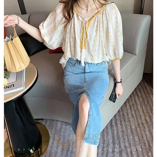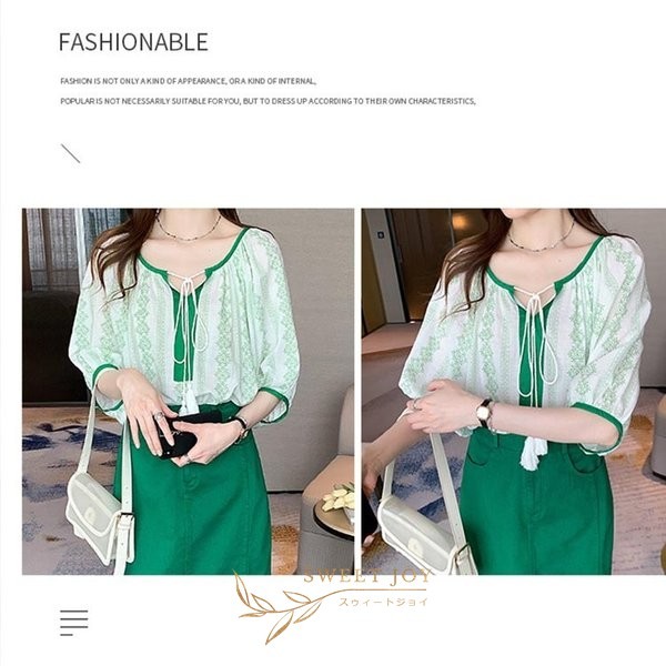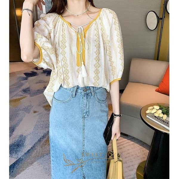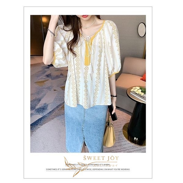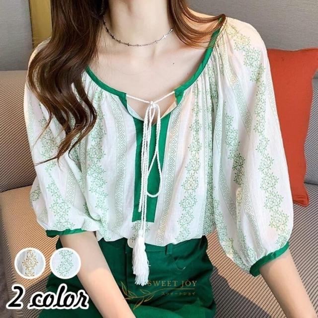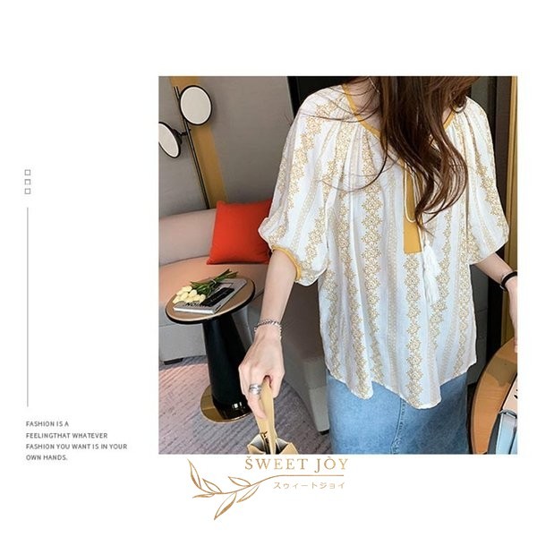 ブラウス レディース 40代 春夏新作 オシャレブラウス 切り替え プリント 半袖トップス Vネック 上品 大人 通勤OL ゆったり シャツ30代 50代
