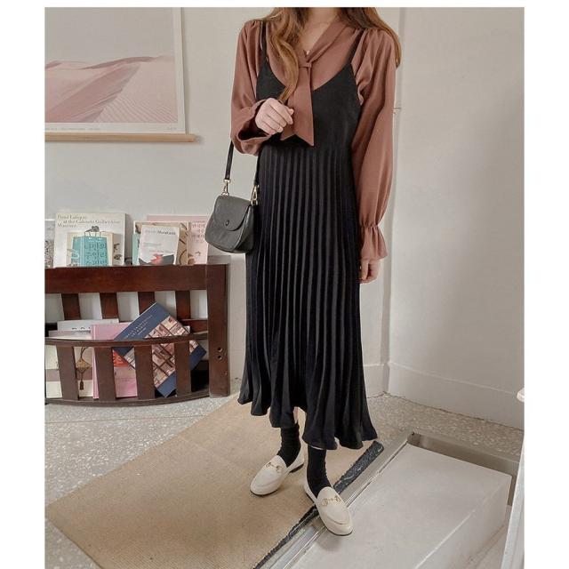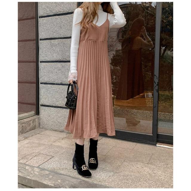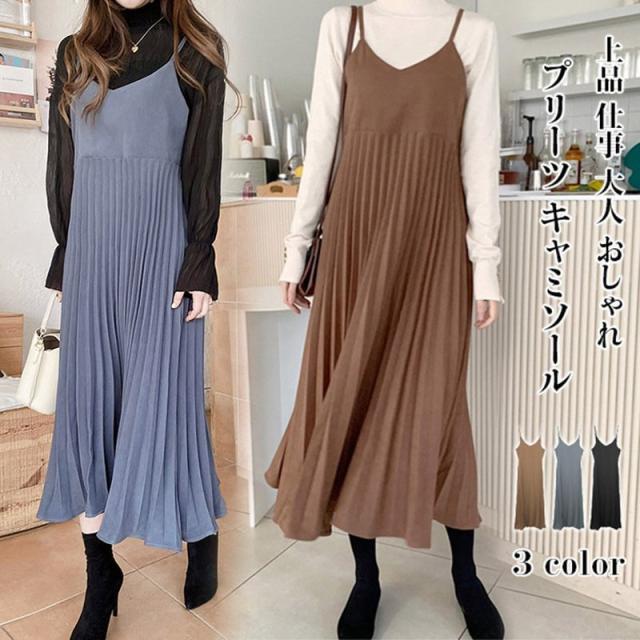 ワンピース レディース 40代ワンピース 秋冬新作 キャミワンピース きれいめ ワンピース プリーツスカート キャミソール オシャレ 通勤 お出かけ 大人