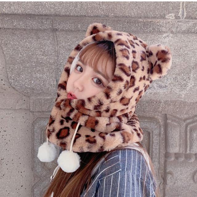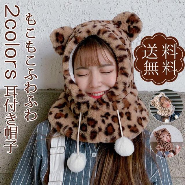 帽子 レディース ファーハット 裏起毛 ボア 耳付き 豹柄 ヒョウ柄 防寒対策 保温性 厚手 ネックウオーマー あったか きれいめ おしゃれ