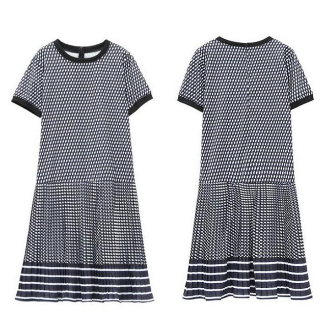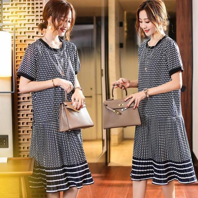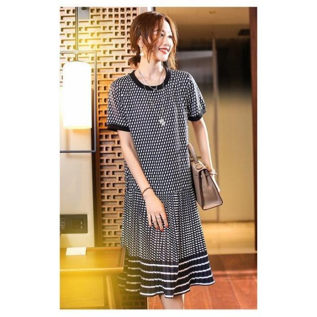 ワンピース レディース 40代 膝丈ワンピース 春夏新作 半袖ワンピース シフォンワンピース 幾何柄 ひざ丈プリーツスカート オシャレ通勤 OL 上品 着痩せ 30代