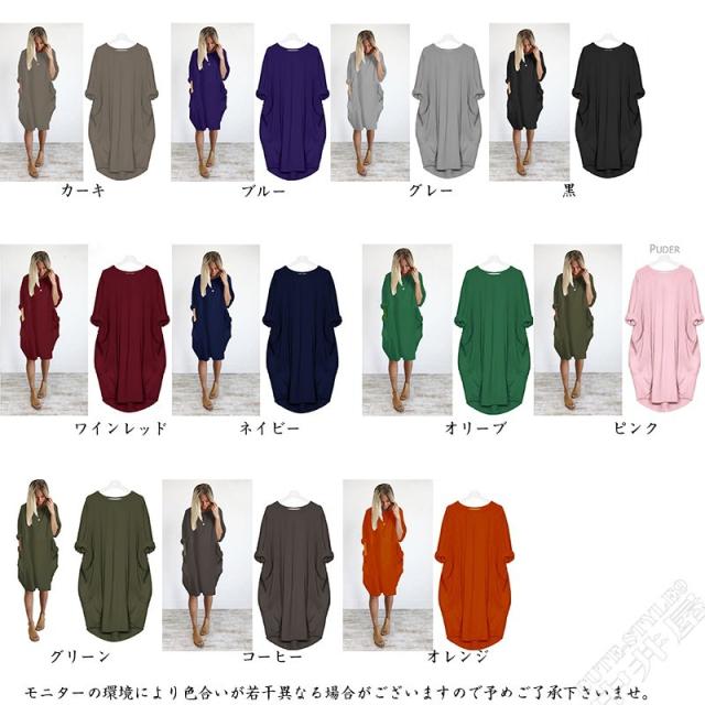 チュニック レディース 体型カバー 着痩せ ワンピース シンプル お呼ばれ 大きいサイズ 半袖 20代30代40代50代