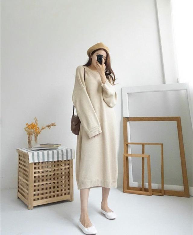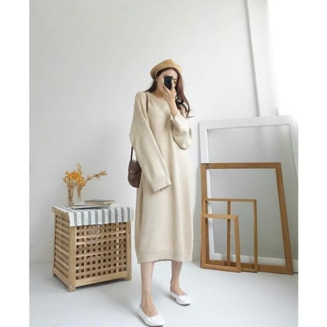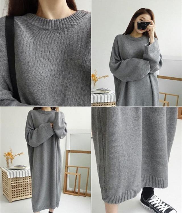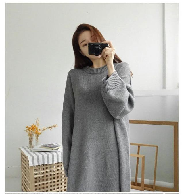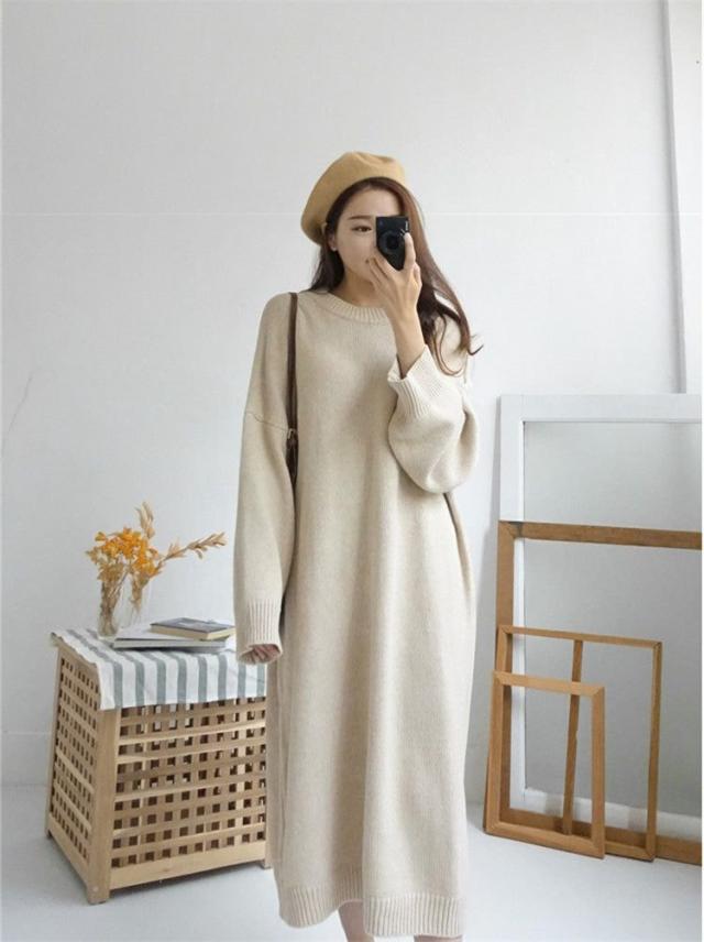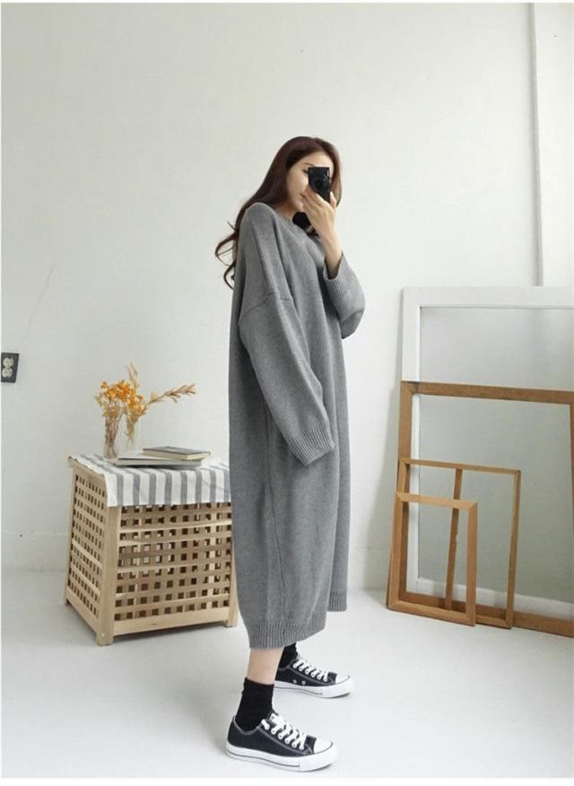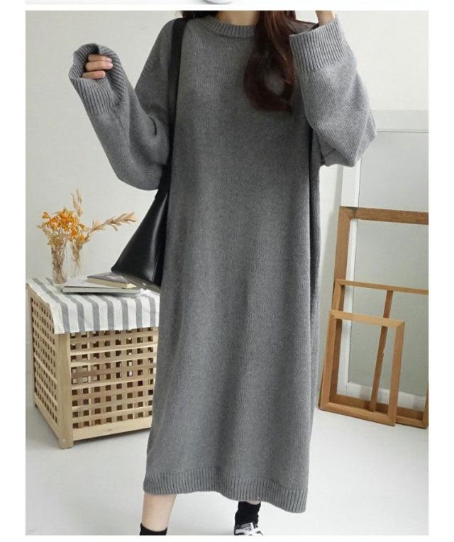 ワンピース 19秋冬 ニットワンピース レディース セーター マキシワンピース 丸首 長袖 ゆったり きれいめ