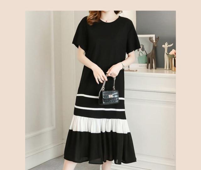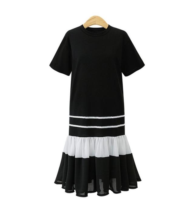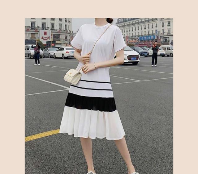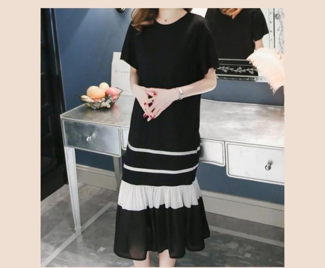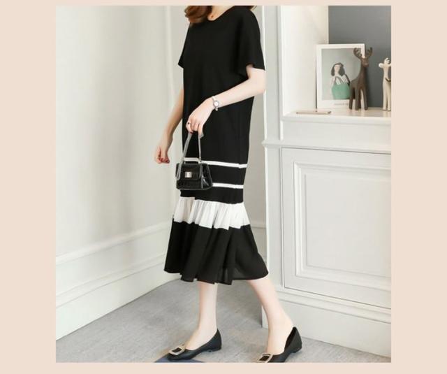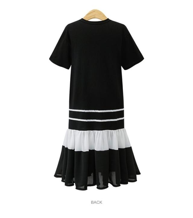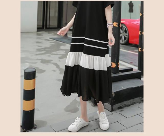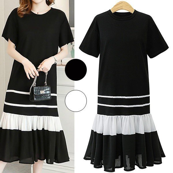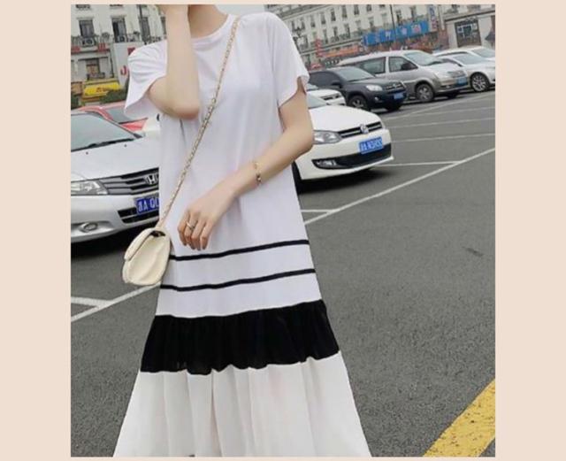 ワンピース ロングTシャツ レディース オシャレ tシャツ 夏新作 体型カバー 半袖 切り替え ロングワンピース 膝丈 白 黒 ゆったり お出かけ 40代