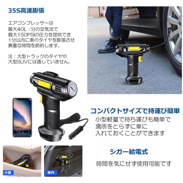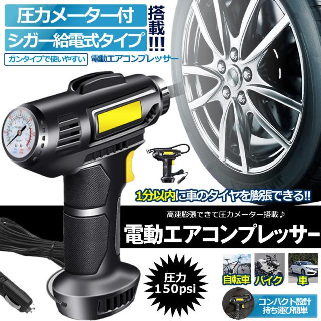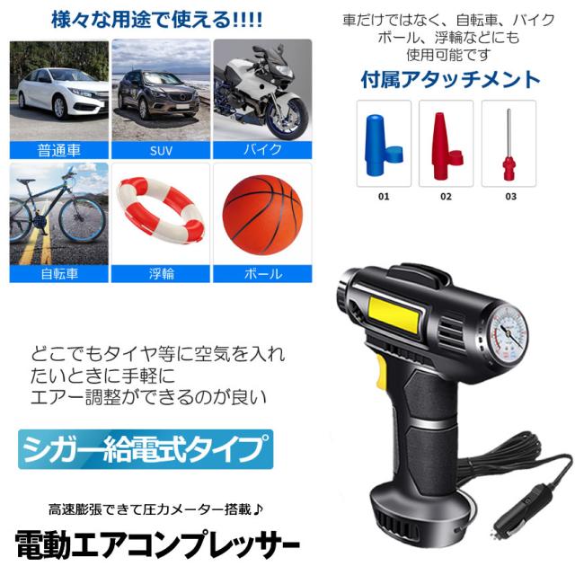 電動 エアコンプレッサー 2個セット エアーコンプレッサー シガー給電 自転車 空気入れ 自動車 バイク ボール 電動空気入れ コンプレッサー ライト SIGAPRE