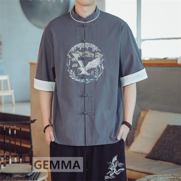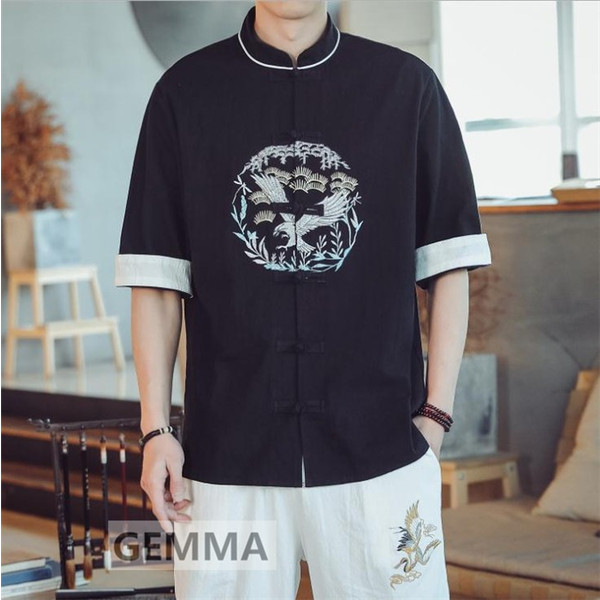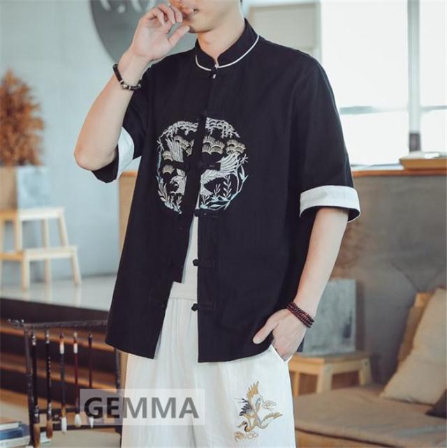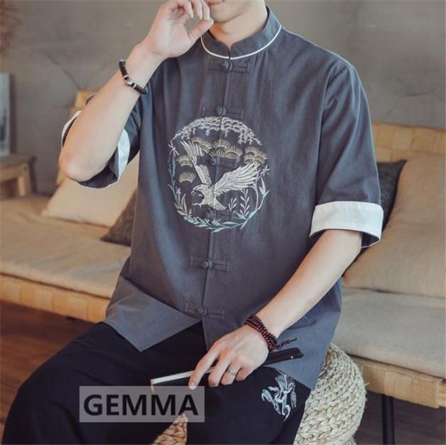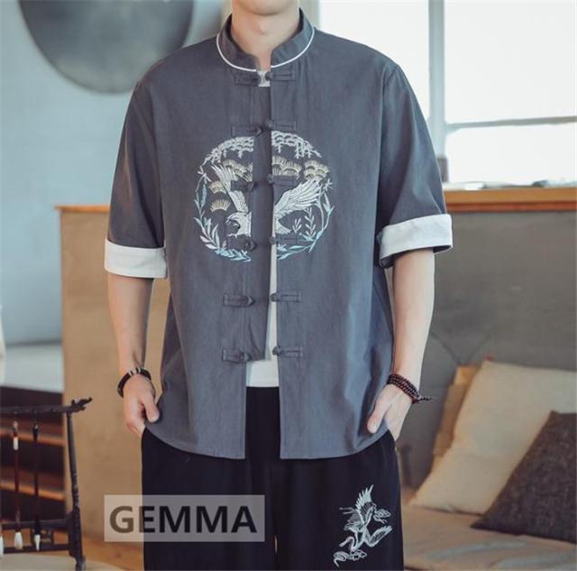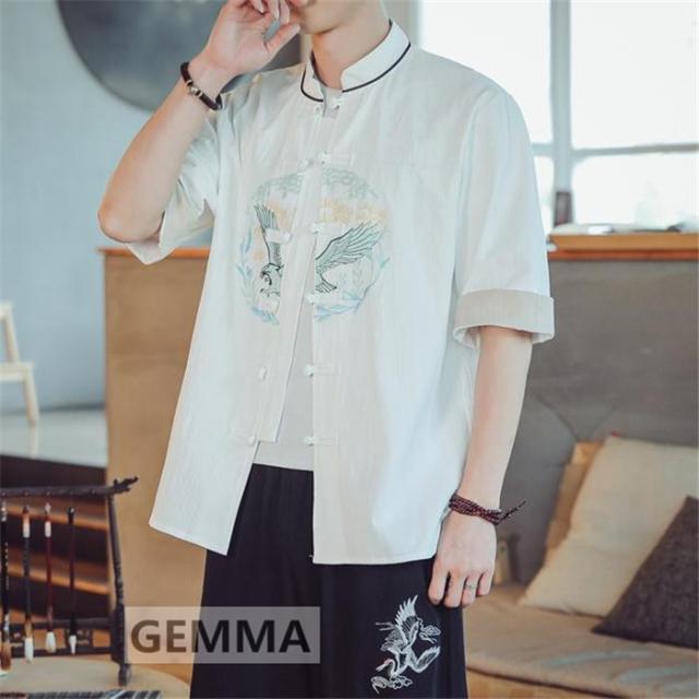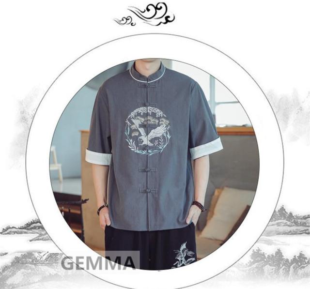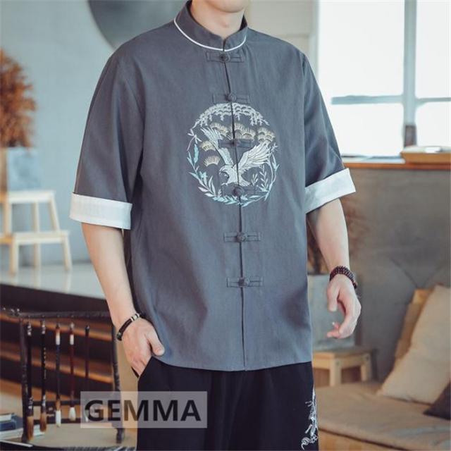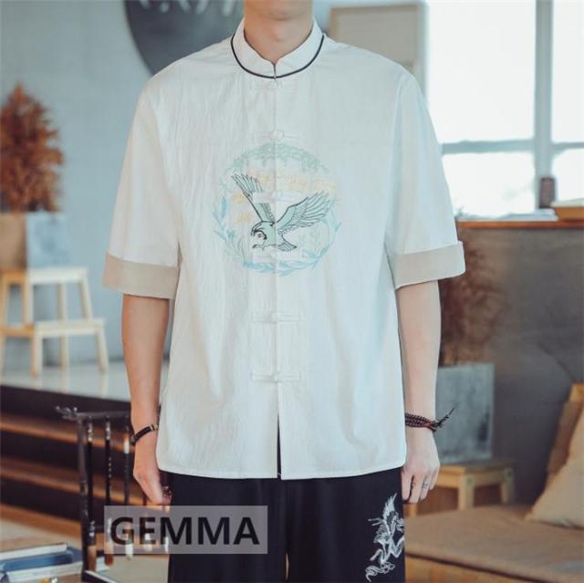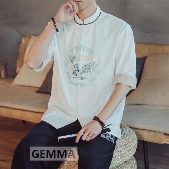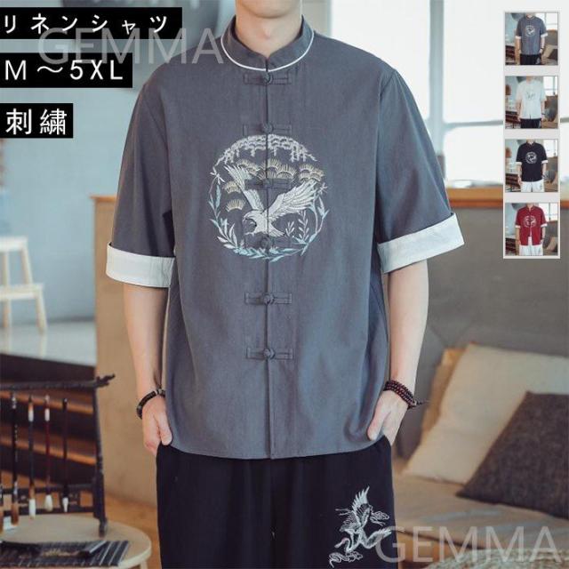 リネンシャツ Tシャツ トップス メンズ 半袖 丸ネック 夏物 麻 tシャツ メンズTシャツ カジュアル おしゃれ 動物 刺繍 新作 民族風 花火大会 お祭り