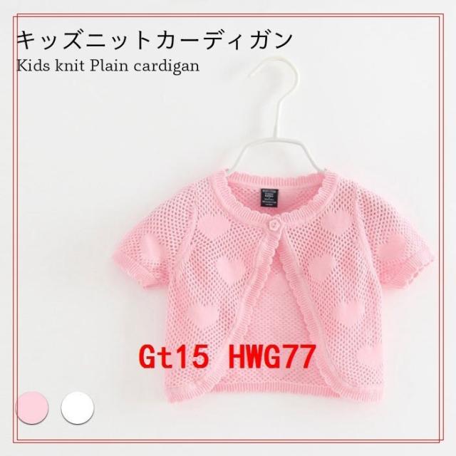 ニットカーディガンボレロコットンキッズ女の子春半袖ハート柄おしゃれ可愛い薄手シンプルショート丈女児重ね着ゆったり子供服