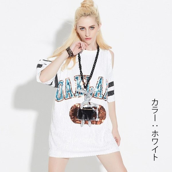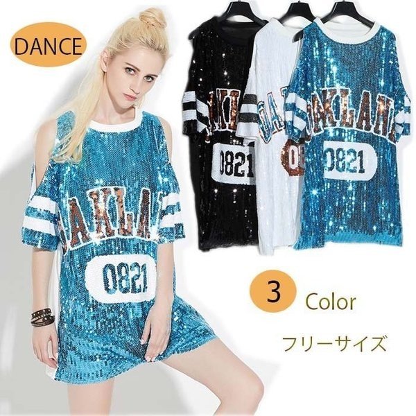 ダンス衣装 ダンスウェア スパンコール ワンピース ヒップホップ ステージ衣装 セクシー ジャズダンス レディース イベント Tシャツ
