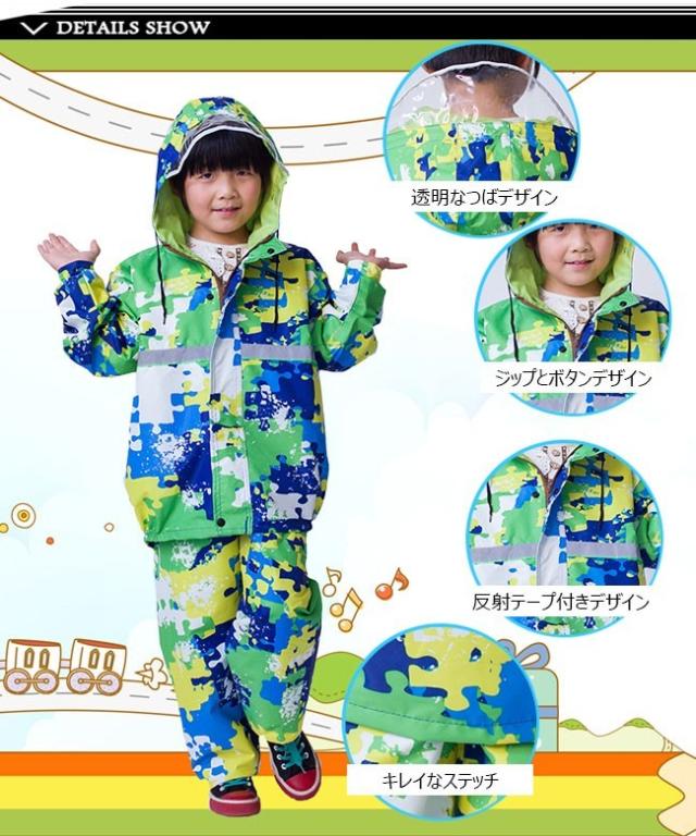 レインコート キッズ 小学生 上下セット 定番 雨具 カッパ 合羽 レインスーツ 撥水加工 通学 自転車 子供用 2019春新作