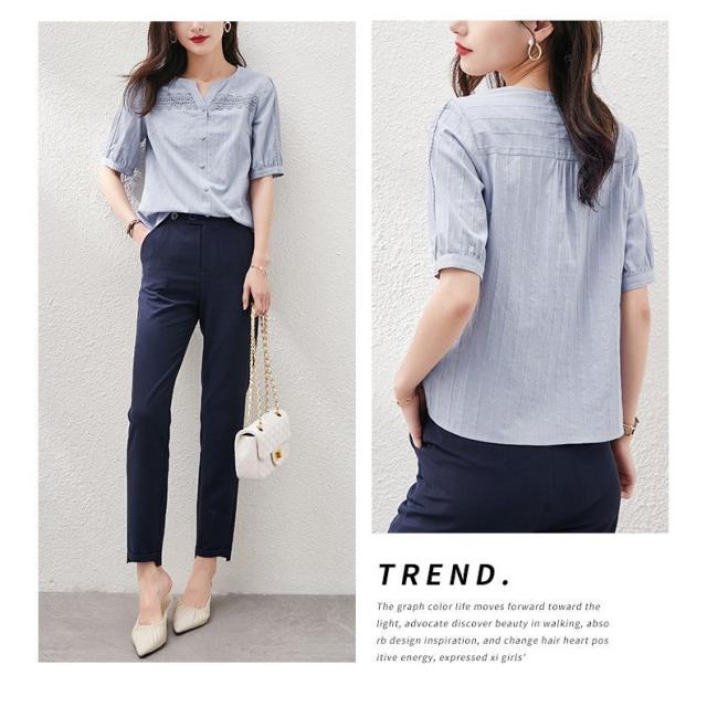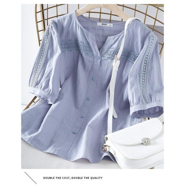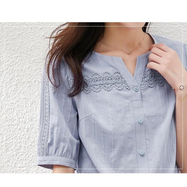 ブラウス レディース 40代 春夏新作 オシャレブラウス レースVネックシャツ 半袖トップス パフスリーブブラウス 大人 通勤 ゆったり シャツ 韓国風 30代 50代