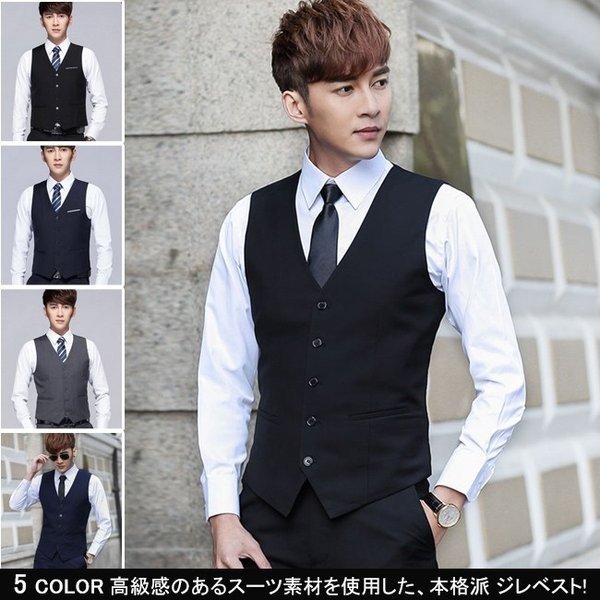 ジレベスト スーツベスト ビジネスベスト メンズ Vネックベスト 前開きベスト 無地ベスト フォーマル用ベスト 紳士服