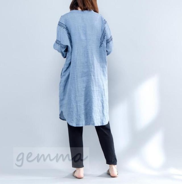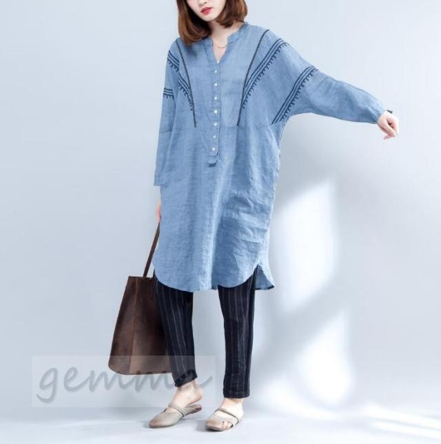 シャツワンピース レディース ワンピース 膝下丈 無地/刺繍 シャツワンピ 体型カバー 夏 20代30代 40代 ポケット付き ファッション