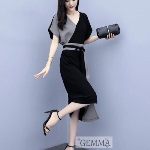 ワンピース レディース 膝丈ワンピース 半袖 シフォン Vネック パーティードレス 40代 きれいめ 夏 韓国風 オシャレ ゆったり 通勤 大人 OL 上品 着痩せ 新品