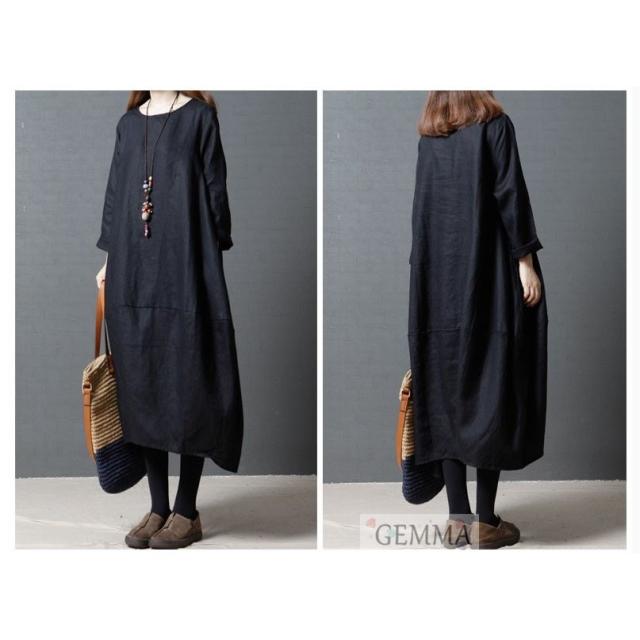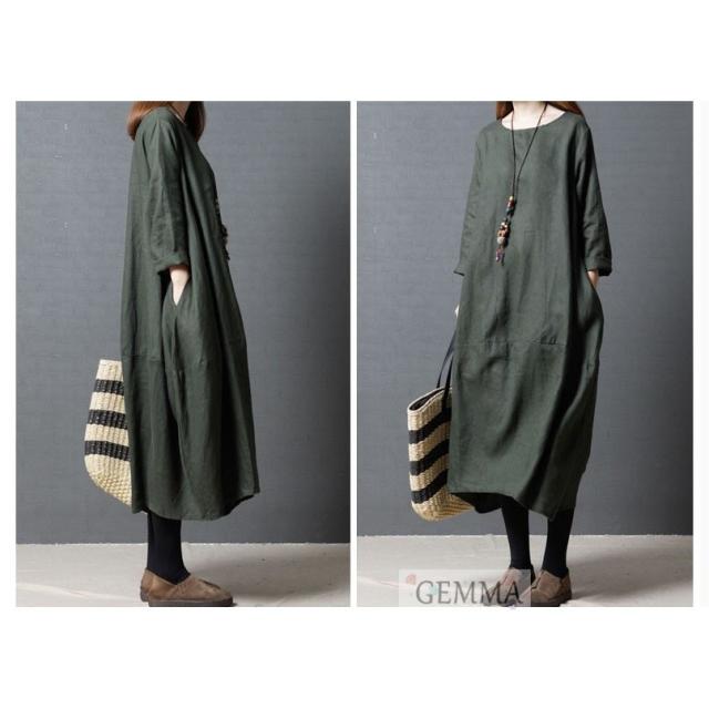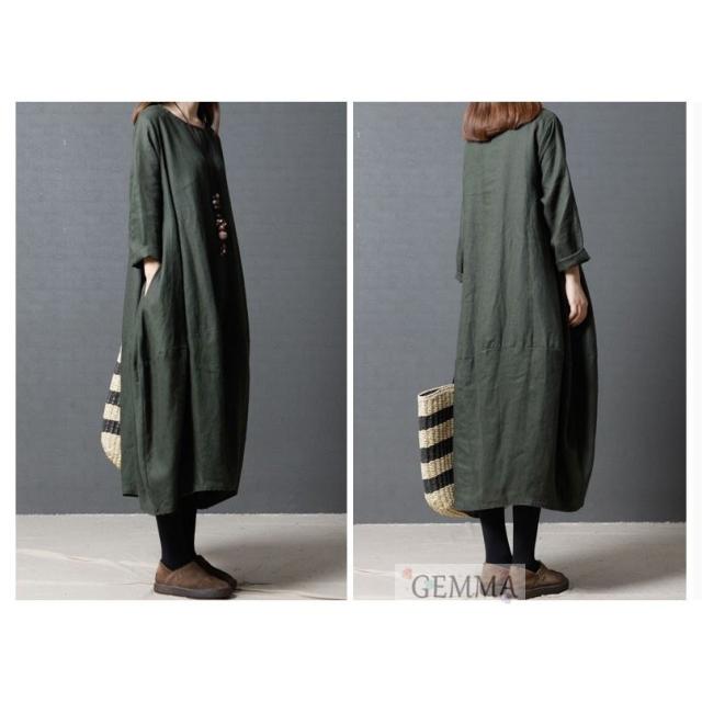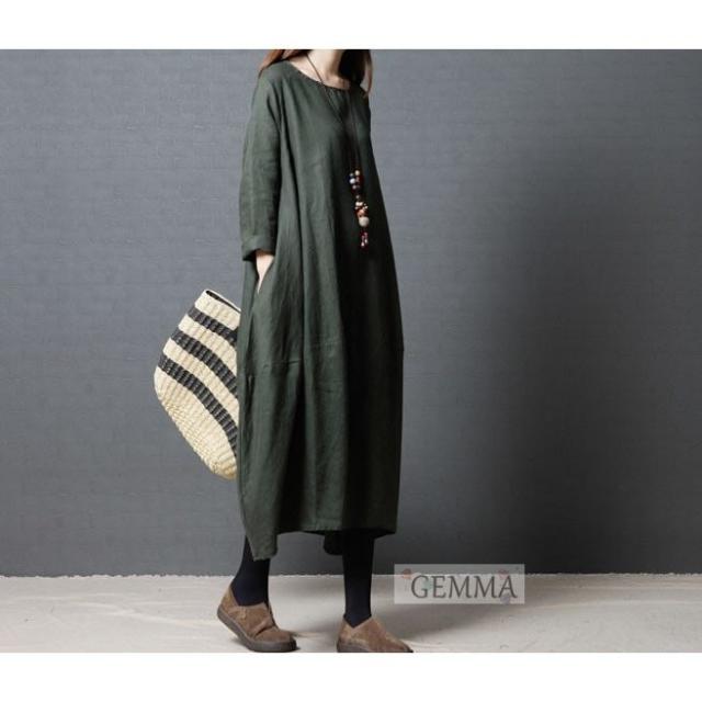 ワンピース vネック シャツワンピ 韓国風 ロング丈 着痩せ レディース マキシワンピース 長袖 オシャレ スリーブ リネン シャツロング ストライプ