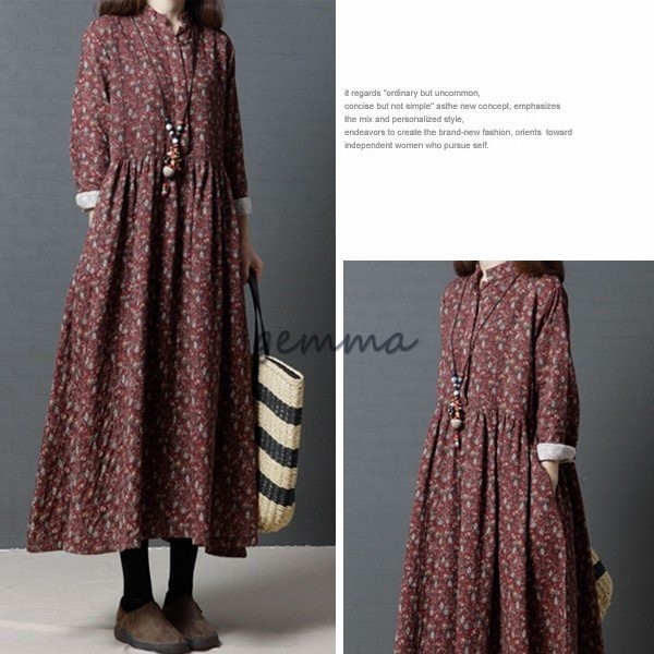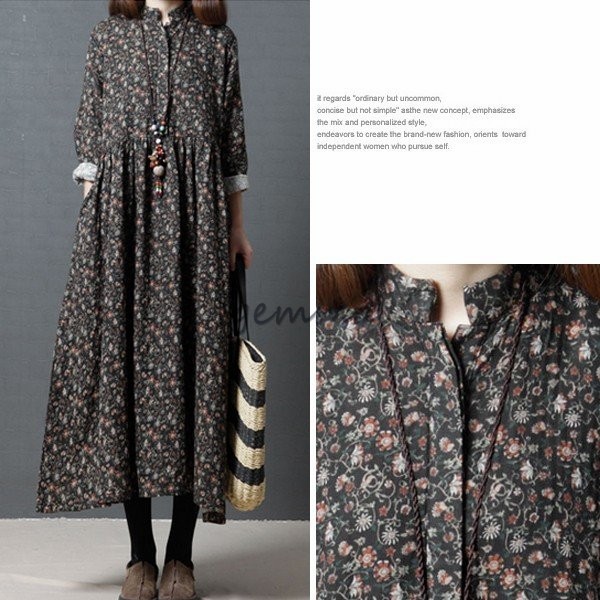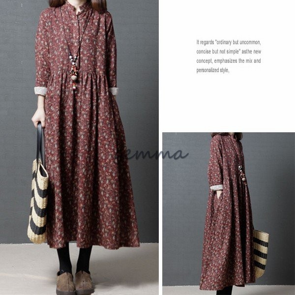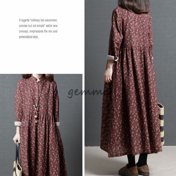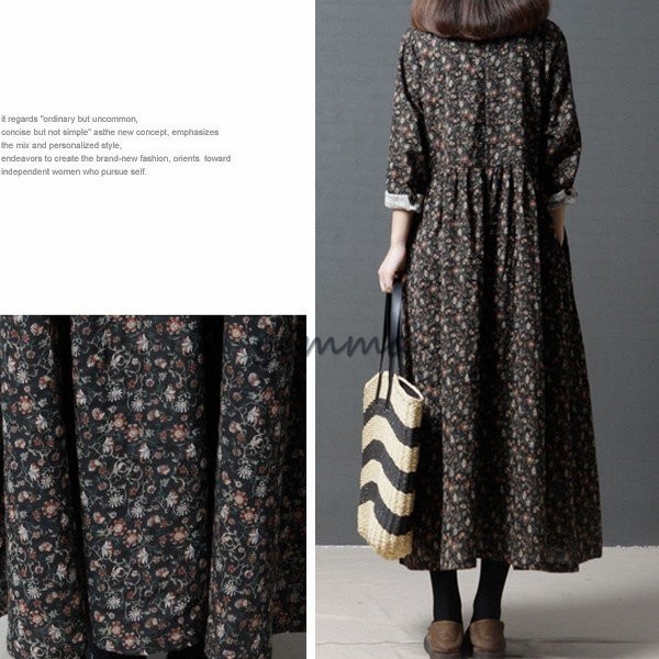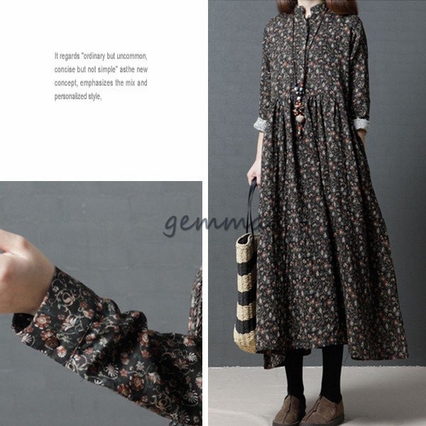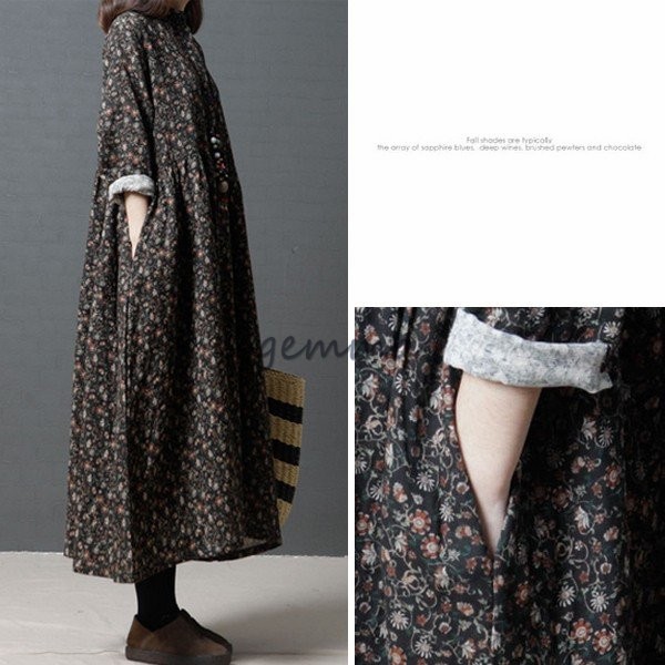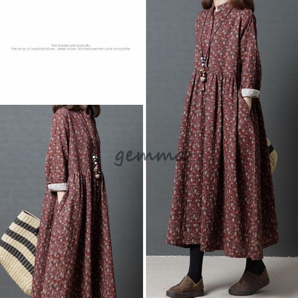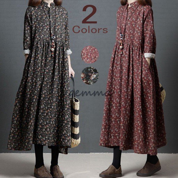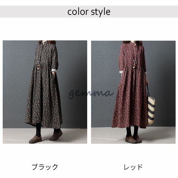 レディース ワンピース フレアワンピース 長袖 Aライン ロングワンピース 花柄 プリント 切替 マキシ丈 ゆったり 大きいサイズ